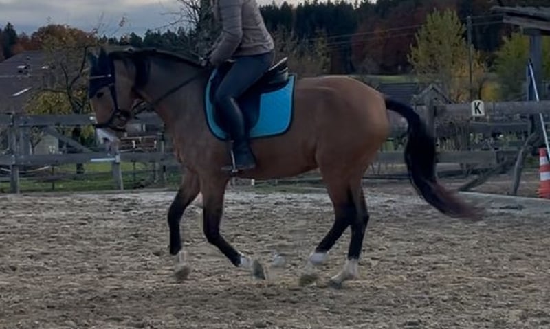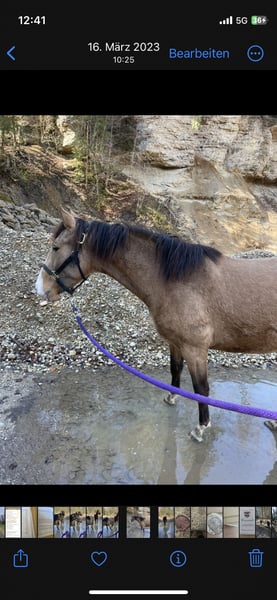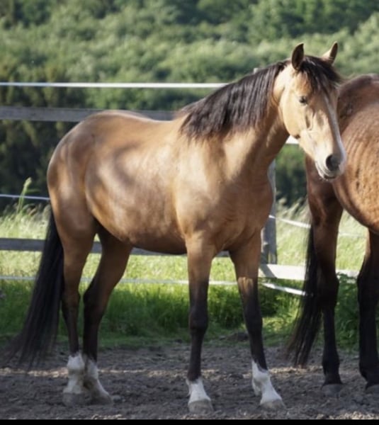 Verkaufe 6 Jahre alte Lusitano Stute. Ich suche für dieses wunderschöne Stütchen einen Bestplatz. Sie ist geritten in Schritt, Trab und Galopp, Seitengänge begonnen. Kennt Ausritte sowohl allein als auch zu zweit. Kleine Sprünge und Ausflüge mit dem Hänger sind ihr bekannt, sowie diverse Working Equitation Hindernisse. Die regelmäßige Hufbearbeitung ist ihr ebenfalls geläufig und das macht sie auch sehr brav. Sie kennt Kinder, Hunde und diverse landwirtschaftliche Fahrzeuge. Sie ist sensibel und braucht einen Menschen, der ihr Sicherheit und Struktur gibt. Sie war auch schon auf diversen Kursen und verhält sich unterwegs ebenfalls für ein junges Pferd vorbildlich. Leider hat sie sich diesen Sommer zu kratzen angefangen, was aber mit einer Decke gut im Griff ist. (Wir haben eine extrem hohe Insektenbelastung.) Zu Anfang der Reiteinheit neigt sie noch zum klemmen, wenn ihr der Reiter aber Sicherheit vermittelt, löst sich das immer schneller. Ich wünsche mir für sie einen Menschen, der ihr zuhört und Freude an gemeinsamen Ausritten und leichter Platzarbeit hat. Vielleicht findet sich auf diesem Wege eine Person, die ein hübsches Pferd für schöne gemeinsame Stunden in der Natur genießen möchte. Ich gebe sie nur ab, wenn die Chemie passt. Sowohl zwischen Mensch und Pferd, als auch zwischen Käufer und Verkäufer. Sie liegt mir sehr am Herzen, aber leider entwickeln wir uns in verschiedene Richtungen, weshalb ich nun die Fühler nach einer Person ausstrecke, die evtl. besser zu diesem Pferdchen passt. Sie ist ca. 1,52m groß und kein Gewichtsträger. Sie hat volle APSL Papiere und ist als Bayo eingetragen. Das Pferd ist seit Jöhrling in meinem Besitz. Ich würde mich über ehrliche und ernstgemeinte Anfragen sehr freuen. Sie wird nicht verschenkt und ihr Preis liegt zwischen 10.000-15.000€, darüber lässt sich natürlich bei einem passenden Deckel reden. Ich bin derzeit in Ausbildung bei Osteodressage und dementsprechend wird auch auf eine adäquate Ausbildung des Pferdes geachtet.