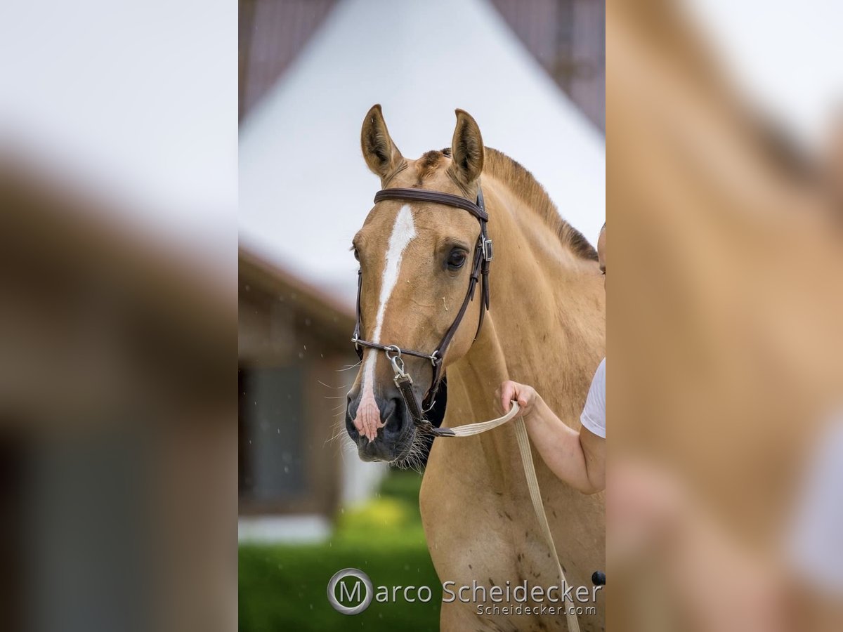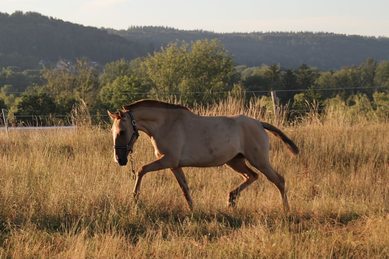 Quā Born May 10, 2020 15.2 hh Red Dun This color is very rare in Lusitano breeding. The Dun gene is a genetic diluting factor that lightens the coat color and often produces wild markings such as a dark dorsal stripe, zebra stripes on the legs, and a shoulder cross. In German, this color is referred to as "Rotfalbe." Quā was transferred directly from her breeder to us at the age of 2. She grew up in a herd and is still kept with the herd here. During summer, she spends 24 hours a day on pasture, and in winter, she is kept in an open stable with turnout. She is also familiar with a box stall. At 4 years old, she was backed for three months. Very slowly and with a lot of horse sense, she was gradually introduced to riding. Since then, she has not been ridden, as she was covered and is expecting her first foal in 2025! During her backing phase, she was well-behaved and gentle. She loves human interaction and enjoys being handled. This is also the reason why I am offering her for sale — she is underchallenged with the other broodmares on the pasture. She would like to work more. She is very people-oriented. She is accustomed to loading, stands well for mounting, and is well-behaved during riding. She is calm when having her hooves trimmed. She has been regularly dewormed and fed with mineral supplements. She is not suitable for beginners, as she is not yet a seasoned riding horse. This is not an emergency sale! Quā will only go to the right person. For questions, please feel free to call. Lusitano-via-Claudia.de