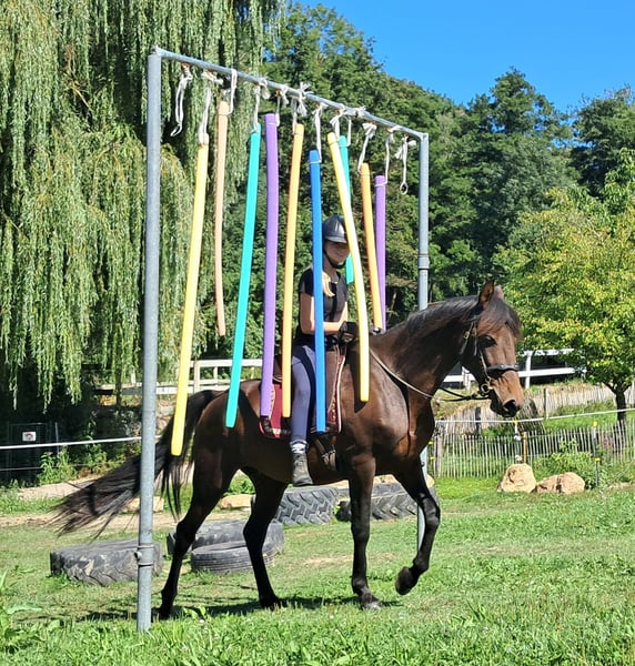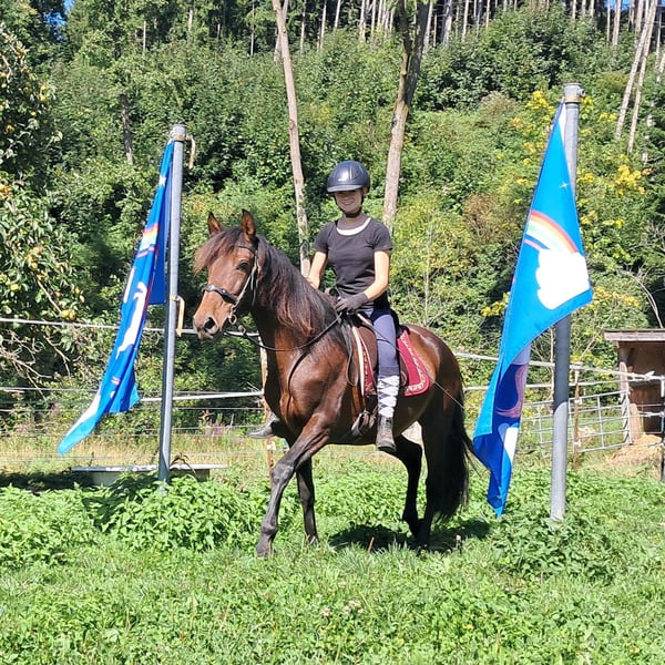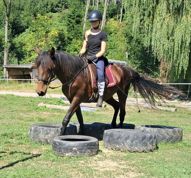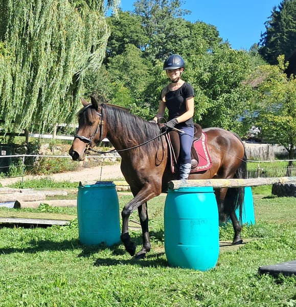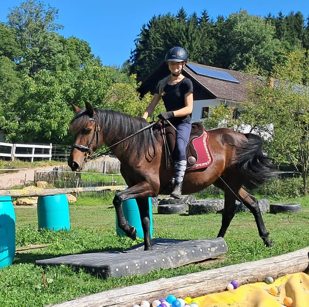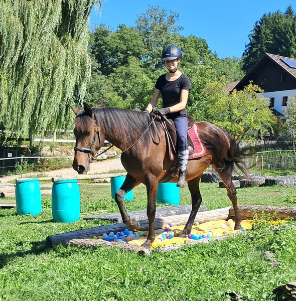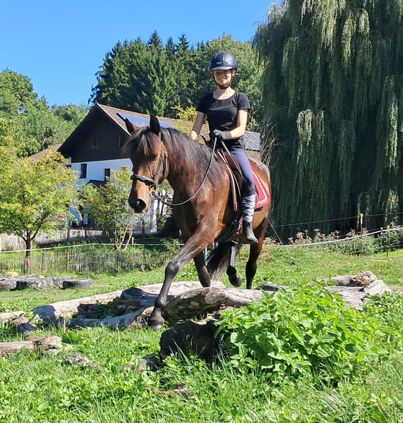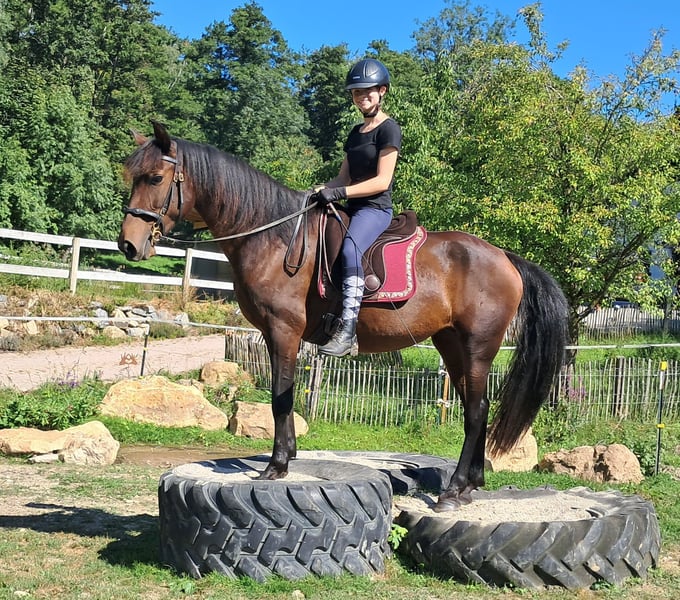 Sierra, a soulmate horse. Gentle mare with a loving nature seeks a caring person, always friendly and polite, well-socialized, easy to ride, comfortable to sit on, eager to please, open to new experiences, to get to know and fall in love with, 152 cm, 7 years old. For trail riding, outdoor riding, and leisure riding. Both English and Western riding are possible. Used to open stabling and herd living, box stalls are also not a problem. Equine passport available. All our horses are familiar with groundwork, different terrains, cars, agricultural machinery, as well as cows, donkeys, sheep, pigs, dogs, cats, and chickens. For information and appointment scheduling, please call 08536-2890292 (voicemail available) or 0157-78378455 (no mobile network at the farm). Please no private messages, emails, or WhatsApp inquiries!! Sunday is a day off. Accessories and transport can be arranged at a low cost. Every customer is granted a contractually established exchange right of 6 weeks. Prices are fixed prices. No inquiries for installment payments are welcome. Those who come with a trailer and take the horse will receive a €100 discount. Upon purchase, a deposit of €1000 in cash is required. Anyone who wants to take the horse immediately must, of course, pay in full. We will take customers on a ride with two horses of your choice so that you can get to know your dream horse and check if it is the right horse for you. Each appointment costs €35, regardless of whether riding, trial riding, or walking... each additional rider (friend, sister, trainer...) pays the same if they ride along, just watching costs us time and thus €20. The amount will be refunded on the same day when purchasing a horse. Due to multiple incidents, we kindly ask for truthful information regarding the rider's weight. If false information is provided, we reserve the right to decline a trial ride on site. For the sake of our horses, we do not want to subject our well-built horses to more than 120 kg. As this is a living animal, these are merely impressions of the caretaker and not guaranteed characteristics of the horse. Further horses/ponies are available in my other ads or upon request.
