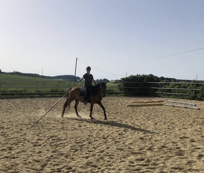 Lirio ist ein 10-jähriger Lusitanowallach. Cavalettis, Dualaktivierung, Working-Equitation-Parcours & Garrocha sind für Lirio alles keine Unbekannten. Er braucht Kopfarbeit aber geht auch sicher & gerne ins Gelände, sowohl in der Gruppe als auch alleine. Lirio wurde Altklassisch / Barock ausgebildet. Abwechslung zwischen Longen-, Hand-, Freiarbeit und Reiten war immer gegeben. Lirio fordert Arbeit ein und ist nicht für Anfänger geeignet. Er ist ein sehr feines und sensibles Pferd, lernbereit, motiviert und neugierig. Lirio ist niemals bösartig, in der Herde eher ranghoch. Lirio hatte außer der Kastration bislang keine OP. Er wird regelmäßig dem Zahnarzt, der Hufbearbeiterin (barhuf) und Osteopathin vorgestellt. Leider hat er Equines Asthma (genauer: Chronische Bronchitis). Das bedeutet regelmäßiges Inhalieren (Flexineb Inhalator kann mitgegeben werden), tägliche, angepasste Bewegung und ggf. Medikamentengabe. Das Asthma hat sich infolge mehrerer Allergien entwickelt und ist im Sommer deutlich schlimmer. Aufgrund der Atemprobleme habe ich Lirio im September 2025 an die Nordsee gestellt: dort wurde sehr schnell klar, dass ihm das Meeresklima deutlich hilft. Lirio steht dort in optimierter Haltung für asthmakranke Pferde symptomfrei. Ich werde Lirio aufgrund seiner gesundheitlichen Bedürfnisse nicht mehr gerecht. Er benötigt einen Stall mit maximalem Freilauf, frischer Luft und Kontakt zu Artgenossen. Optimalerweise mit bedampftem Heu und staubarmer Einstreu. Die Möglichkeit der Inhalation sollte gegeben sein. Lirio ist leichtfuttrig und sollte im Sommer nicht uneingeschränkt Zugang zur Graskoppel haben. Durch die aktuellen Erfahrungen an der Nordsee, wünsche ich mir für Lirio auch zukünftig einen Platz mit Meeresklima. Charakterlich habe ich in 22 Jahren Pferdeerfahrung noch kein besseres Pferd kennenlernen dürfen. Mir ist deshalb umso wichtiger, zu betonen, dass Lirio ein krankes Pferd ist: er benötigt viel Pflege und Expertise. Ich suche für ihn einen Herzensmenschen, der sich bestenfalls mit der Rasse auskennt. Allenfalls aber jemanden, der bereit ist, sich auf die Rasse & auf Lirio einzulassen. Platz vor Preis! Bei ernsthaftem Interesse verschicke ich sehr gerne Videos, weitere Fotos und Informationen.