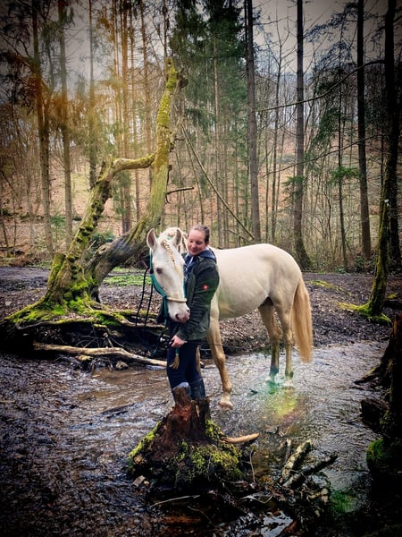 Ich biete meinen wundervollen und herzenslieben PSL Wallach, Jeitoso das Arcas (Ulisses x Fidalgo), geboren am 09.05.2014 aus der renommierten Zucht von Dr. Manuel Maia Correia und besten Veiga Linien, zum Verkauf an. Für meinen "Gogog" (zum Spitznamen gibt es natürlich die passende Anekdote) wünsche ich mir ein liebevolles Für-immer-Zuhause in fachkundige Hände. Er wurde im Juli 2025 nach 11 Jahren Hengstdasein gelegt. Jeitoso ist in allen Grundgangarten sowohl in der Halle, auf dem Platz als auch im Gelände geritten. Bereits als Hengst wurde er auch mit Stuten (mit einer guten Pferdelänge Abstand) geritten. Er hat sehr gute und butterweiche Gänge. In der Gruppe ist er im Gelände einwandfrei, allein benötigt er eine ruhige und sichere Führung. Bei Unsicherheiten, die sich eher im Alleingang zeigen, bedarf es manchmal etwas Überzeugungskraft, wobei er dabei meistens stehen bleibt, um die "Gruselquelle" genauer zu beobachten. Unkontrollierbar habe ich ihn dabei noch nicht erlebt. Es handelt sich dennoch um ein lebhaftes Pferd (war fast ein lebenlang Hengst mit Deckerfahrung), das nicht für unerfahrene oder unsichere Reiter geeignet ist. Aufgrund seiner kompakten Statur (Stockmaß knapp 1,60 m) und seiner hohen Wendigkeit sehe ich großes Potenzial in der Working Equitation und der klassischen Reitkunst. Für mich war und ist er das ideale Freizeitpferd mit gutem Allroundpotential. Ich habe ihn zweijährig direkt vom Züchter geholt, somit ist er aus zweiter Hand und unverbraucht, ohne jegliche negative Erfahrungen. In der Herde ist er ranghoch, aber sehr verträglich. Ich empfehle weiterhin die Haltung in einer reinen Wallachherde, da er rossige Stuten mit Sicherheit bespringen bzw. sehr resolut für sich beanspruchen würde. Die Abgabe erfolgt schwersten Herzens und AUSSCHLIESSLICH aus gesundheitlichen Gründen und Zeitmangel meinerseits und wegen des krankheitsbedingten höheren Pflegebedarfs meines zweiten Pferdes. Er ist jung, gesund und genießt es, beschäftigt, beschmust und betüddelt zu werden, was er auch sehr charmant einfordert. Er ist sehr anhänglich und ein Ein-Mensch-Pferd, das volle Aufmerksamkeit verdient und definitiv Potenzial für mehr hat, als ich ihm bieten kann. Einziges bekanntes Manko sind Melanome am After und unter der Schweifrübe, die jedoch sehr langsam wachsen und keinerlei Einschränkungen verursachen. Er ist schmiede- und verladefromm, brav bei Physio und Tierarzt und ist Barhufer. Im Gelände trägt er Hufschuhe, da er etwas fühlig ist. Im Winter und bei Regen möchte er gern sein warmes Deckchen, da er beim ersten Zug eine kleine Rückenmimose ist und sehr schnell einen mit Steifheit und beleidigten Blicken bestraft ;) Er kann auch - was ich natürlich bevorzugen würde - mit komplettem, sehr hochwertigem Zubehör abgegeben werden. Dies beinhaltet: einen komplett anpassbaren und auf ihn abgestimmten Sattel von CHE (Classical Horse Equipment), Modell Garrocha in Cognac und Braun (auf den Bildern ersichtlich); Winter-, Übergangs-, Regen-, Fliegen-, Abschwitz- und Ausreitdecken in mehreren Ausführungen; Fliegenhauben mit UV Schutz; 2 Paar Fesselkopfgamaschen von Equisafe; 2 Paar Hufschuhe von ScootBoots mit Zubehör; einen Multifunktionszaum von Hillbury in Cognac und Braun mit abnehmbaren Trensenriemen (auch nutzbar als Kappzaum, Sidepull, mit Doppelzügel, als kolumbianisches Bosal oder zum Führen), passende Lederzügel, passende Tauzügel von Hillbury, ein Bodenarbeitsseil von Hillbury; 2 Sätze Dressurschabracken und Fliegenohren von Equestrian Stockholm (Forest Green und Classic Royal); eine Lammfellschabracke in Nougat von Mattes; eine komplette Putzbox mit seinen Lieblingsbürsten. Der Preis beträgt 6.500 € VB ohne Zubehör und 8.500 € mit Zubehör. Eine AKU kann gern vorort auf Kosten des Käufers organisiert werden. Dennoch gilt Platz vor Preis, also kann man bei echtem Interesse bestimmt über alles reden :) Es handelt sich um einen Privatverkauf.