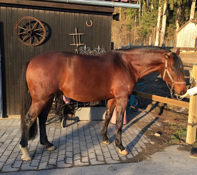 Wundervoller Luistano Wallach als Beistellpferd zu verschenken! Wir verschenken unseren Lusitano PSL Wallach der nach einer Kreuzbandverletzung im Hinterbein vor ca. 5 Jahren und trotz der durchgeführten Operationen leider nur noch im Schritt (Seitengänge und Piaffe machen ihm Freude) geritten werden kann. Aufgrund zwingender privater Veränderungen können wir ihm leider nicht länger ein Zuhause geben und suchen ab sofort einen lieben Menschen für ihn. Gerne verschenken wir ihn als Beistellpferd. Da er früher ein Zuchthengst und sehr erfolgreiches Dressurpferd war, wurde er bisher nicht in der Herde sondern immer nur neben anderen Stuten, Wallachen, Hensten und Ponies gehalten. Es ist gut möglich, dass er nach ausreichender Eingewöhnungszeit Herdenkompatibel ist, kann leider nicht garantiert werden. Ansonsten ist er schmiedefromm (braucht vorne Eisen bei hartem Boden), verladefromm, lässt sich toll putzen, führen, kennt Führanlage täglich und wird ab und an Schritt geritten und Boden gearbeitet. Bis auf seine Beinverletzung ist er kerngesund, geimpft, entwurmt und Zähne wurden regelmäßig gemacht. Als Therapiepferd im Schritt ist er sicher auch ein toller Partner. Näheres gerne auf Anfrage. Wir freuen uns auf Ihre Nachricht!