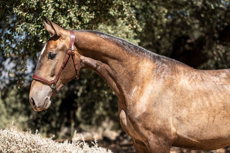 Éblouissante pouliche Lusitanienne grise d'un an. Avec un pedigree exceptionnel, Trufa LD est la fille de Fogoso x Melia LD, et la petite-fille du légendaire Dragao Das Figueiras. Ne manquez pas cette opportunité !