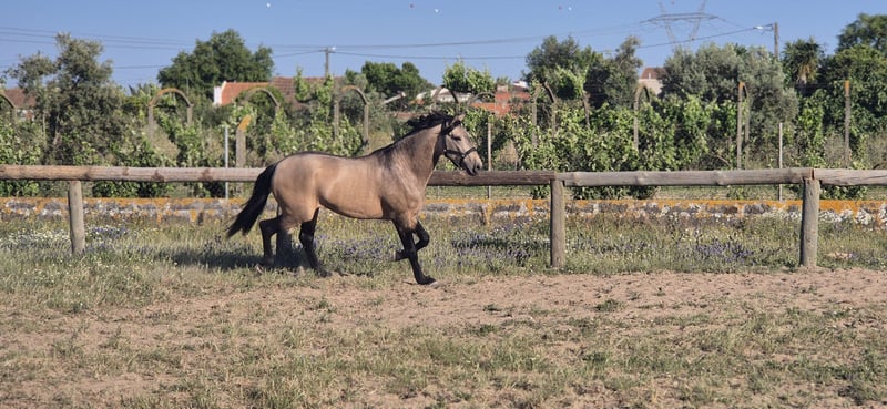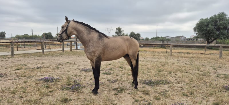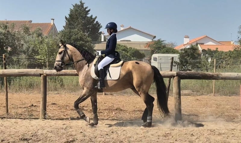 Introducing Raval do Ribatejo, a truly striking gelding with the kind of character that wins hearts. Naturally confident, curious, and relaxed, he is exceptionally well-behaved on the ground and a joy to handle. His shiny coat and harmonious proportions are a testament to both excellent breeding and care. With strong, balanced footing and powerful impulsion, he responds sensitively to aids and maintains focus throughout training sessions. Raval boasts a solid foundation in his schooling, making him easy and comfortable to ride, whether you’re looking for a partner for leisure or progress in your discipline. If you’re looking for a horse that combines beauty, brains, and a noble spirit, Raval do Ribatejo is the one.