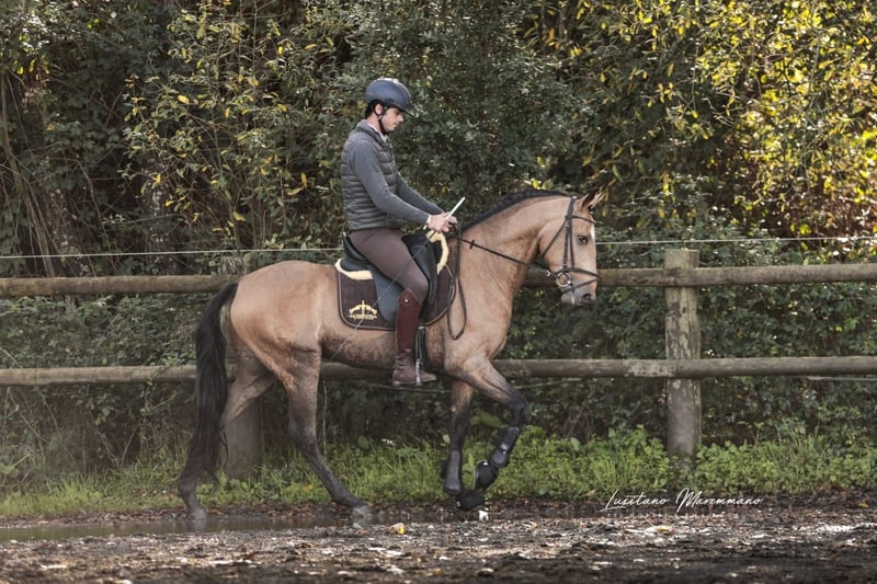 Bellissimo stallone PSL in color buckskin dorato Caratteristiche: - Razza: Lusitano - Sesso: Stallone - Anno di nascita: 2020 - Colore: Buckskin - Altezza: attualmente 152 cm, crescerà ancora qualche centimetro QUIXOTE è un giovane stallone Lusitano purosangue (PSL), che si distingue non solo per il suo colore eccezionale, ma anche per il suo carattere onesto e la sua solida base. • Età / Altezza: attualmente circa 1,52 m, altezza finale circa 1,54–1,55 m • Colore: Buckskin – dorato, molto appariscente ed elegante • Pedigree: o Padre: URANIO (di SOCIEDADE DAS SILVEIRAS) o Madre: JERUPIGA con 70 punti in selezione • Salute: revisione veterinaria attuale senza alcuna osservazione • Addestramento: base montata – si muove con sicurezza in tutti e tre i passi fondamentali, sempre gentile, semplice e con una buona attitudine al lavoro • Carattere: fresco, molto gentile nel maneggio, affettuoso e piacevolmente semplice. Si mostra in ogni situazione calmo, amichevole e desideroso di imparare. QUIXOTE ha tutto ciò che ci si può aspettare da un giovane Lusitano: eccellente pedigree, ottima salute, solida base sotto sella e un carattere che lo rende un partner per la vita. Il suo aspetto dorato completa il pacchetto complessivo. Un cavallo con un enorme potenziale – sia per il cavaliere del tempo libero che cerca un compagno affidabile, sia per i cavalieri che desiderano un cavallo speciale con prospettive. Posso inviare ulteriori foto e video volentieri se interessati.
