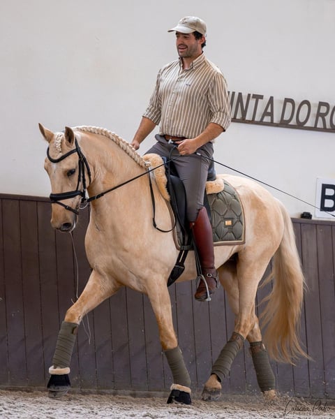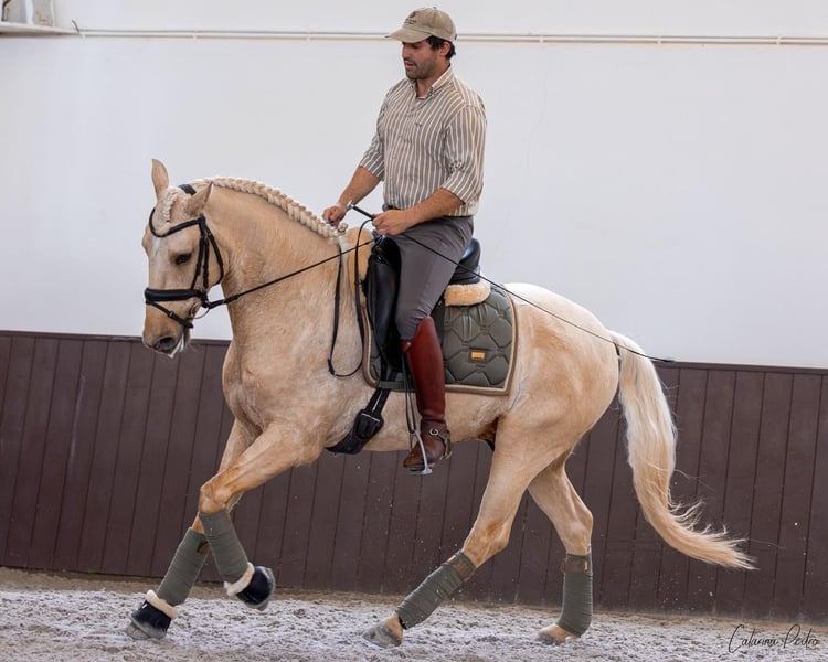 Fairy-tale girl’s dream with a charming character Features: Breed: Lusitano Gender: Stallion Year of Birth: 2020 Color: Palomino Height: 159 cm currently For sale is an impressive Lusitano stallion, born in 2020. With a height of 159 cm and his striking palomino color, he draws all eyes to him. He is Pirofree! This talented stallion is excellently suited for the discipline of Working Equitation and already shows promising progress in his training. His friendly nature and willingness to learn make him an ideal partner for ambitious riders who enjoy versatile work with their horse. He is well-mannered, easy to handle, and has already gained experience in the field and during off-site training. He learns very quickly, knows all Working Equitation obstacles, and continues to develop under the rider. Flawless X-rays are available. I can gladly provide more pictures and videos if interested.
