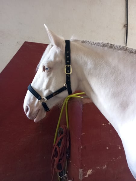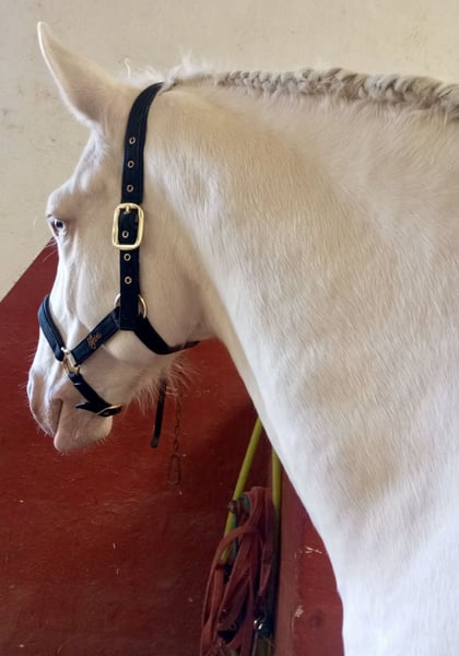 Wunderschöner und sehr gut gebauter Lusitano Wallach in der Sonderfarbe Cremello mit blauen Augen. Er ist super brav, auch für schwächere Reiter geeignet auf dem Platz sowie auch im Gelände. Ein Pferd zum genießen und Spaß haben und zudem auch noch gut aussehen;-)