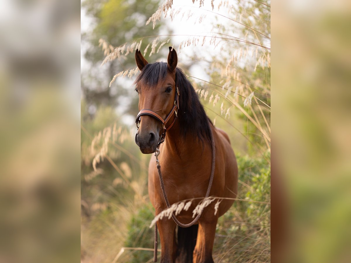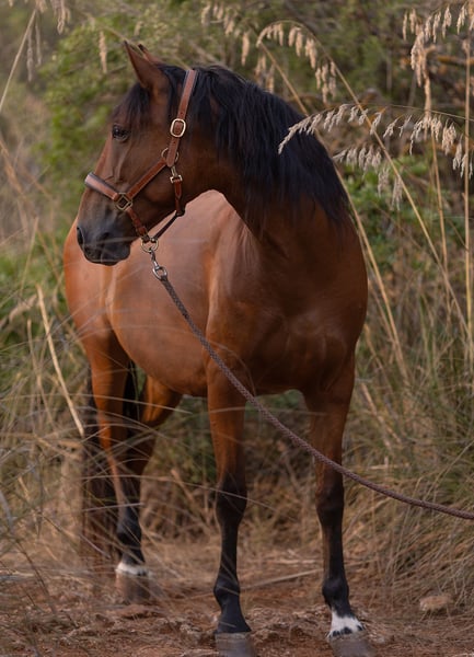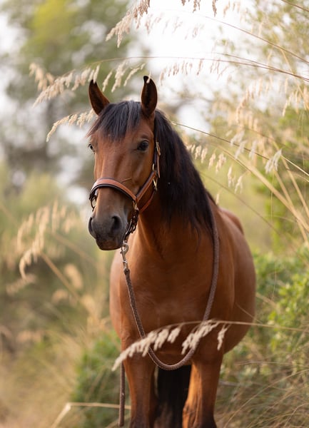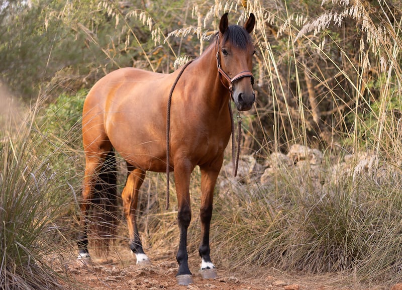 Jaleo SC es un excepcional potro de cinco años, de 1,64 m, criado en nuestra propia cuadra Son Cavalls, nacido en nuestras instalaciones, criado en un grupo de manada y desde el primer día estrechamente vinculado a las personas. Hijo de la yegua lusitana Duna y del enérgico semental español Normando, no solo posee genes excelentes, sino también una fascinante combinación de serenidad, sensibilidad y verdadera dedicación al ser humano. **Carácter y personalidad** Jaleo es un caballo que no pasa desapercibido, no por ser ruidoso, sino porque en cada situación busca estar en contacto con las personas. - Extremadamente sociable y cercano, busca activamente la cercanía, la interacción y tareas a realizar. - Quiere estar siempre en el centro de atención y formar parte de la acción. - Para su juventud, es notablemente sereno y valiente. - Al mismo tiempo, es sensible, perceptivo y atento. - Enfrenta nuevas situaciones con valentía, curiosidad y confianza. - Se orienta estrechamente a la persona y comprende bien el lenguaje corporal sutil. - Es el primero en la manada en acudir con entusiasmo para aprender algo nuevo. Es un caballo excepcional para personas que valoran una verdadera asociación. **Formación y nivel de desarrollo** En Son Cavalls, criamos cada potro conscientemente a su propio ritmo, paso a paso, adaptándonos a su desarrollo mental y físico individual. - Comenzamos con suavidad a los 4 años, sin presión. - Se montó por primera vez con otro caballo para fortalecer la confianza y la serenidad. - Desde temprano, se le llevó a pasear en la naturaleza como caballo de compañía. - Más tarde, fue montado con seguridad, con una base clara en el trabajo básico. - Está familiarizado con el círculo de entrenamiento, la pista de doma y el trabajo en libertad. - Participa activamente en programas de coaching y desarrollo personal. - Demuestra una presencia impresionante, atención y pensamiento activo. - Es valiente, motivado y concentrado. Tiene todo lo necesario para seguir desarrollándose en diferentes disciplinas ecuestres o enfoques de relación, como el arte barroco, la doma clásica, la Working Equitation o el trabajo de ocio refinado. **Salud y manejo** - En plena forma, criado con solidez y equilibrado físicamente. - Herrador experimentado, tranquilo y cooperativo. - Relajado en la visita al dentista. - Le encanta el entrenamiento en remolque, es curioso, con ganas de aprender y abierto a nuevas experiencias. - Socialmente seguro en la manada, amistoso y con poca tendencia a conflictos. - Mentalmente fuerte, confiable ante nuevos estímulos. Un potro bien preparado para convertirse en un caballo de doma y vida sostenible, con un enfoque consciente. **¿Para quién es adecuado Jaleo SC?** Para personas que buscan un caballo que: - Viva una verdadera cercanía y asociación. - Esté altamente motivado y orientado a la interacción con las personas. - Reaccione con serenidad y sensibilidad. - Disfrute del aprendizaje, la exploración y el crecimiento conjunto. - Posea un potencial excepcional para trabajos barrocos, coaching, trabajo en el suelo, Working Equitation o una equitación de ocio consciente. Jaleo SC no solo acompaña a su jinete, sino que participa activamente en su vida. Un futuro compañero de vida, cuyo corazón late cerca del ser humano. Ubicación: Son Cavalls Con gusto enviamos más información, fotos o videos.