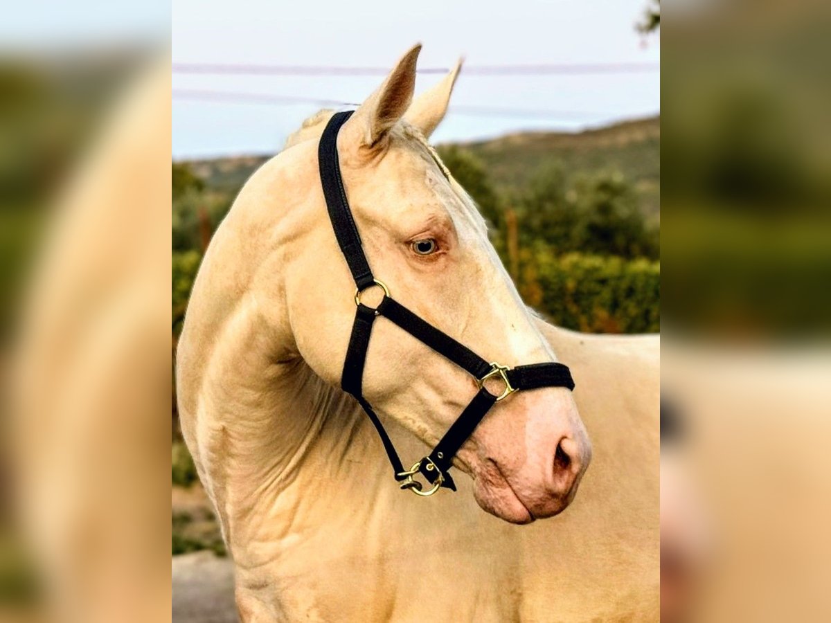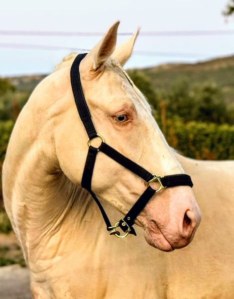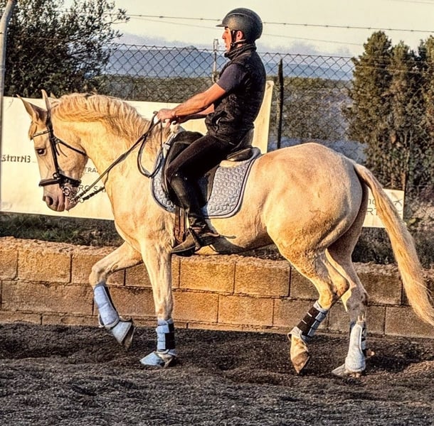 This beautiful young gentleman is looking for his **forever home** 🏡 He captivates not only with his unique Cremello color but especially with his patient and gentle nature. 🥰 Experienced riders will find him easy to handle—whether in the riding arena or out on the trails. It doesn’t matter if he’s ridden alone or with company. The lovely boy is not spooky, and nothing seems to ruffle his calm. He is completely unspoiled, having been trained in basic riding and mastering simple lateral movements. He works very focused and is eager to learn. An intelligent horse, well-trained, with a lot of talent for working equitation. He provides confidence and security to a less experienced rider, and under a rider, he is well-behaved and eager to do everything right. A veterinary examination, including X-rays, can be arranged at the owner’s expense. If you like this stunning Cremello Lusitano, please contact me with your phone number so I can get in touch with you as soon as possible. Location: Spain, near Seville We are happy to arrange transportation for you 🚛 Additional horses in special colors such as Cremello, Champagne, Perlino, Palomino, Chocolate Palomino, and Buckskin are available. 🥕🥕🥕 According to quality 😀