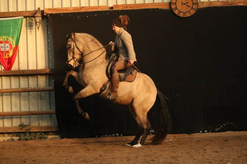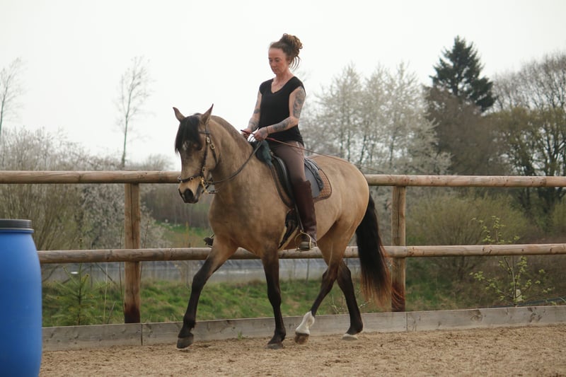 Mein Name ist Ines Jessen, seit ca 12 Jahren bilde ich Pferde in der akademischen Reitweise aus, wobei wir in den letzten Jahren unsere Fühler auch immer mehr in andere Reitweise ausstrecken. Mehrmals im Jahr fliegen wir persönlich nach Portugal und suchen unsere Pferd dort aus. Wir lernen sie über mehrere Tage im Umgang und Verhalten kennen, bevor wir uns zu einem Kauf entscheiden. Bei uns leben sie überwiegen in kleinen Gruppen draußen. Sie lernen den alltäglichen Umgang kennen, das Gelände, die Arbeit auf dem Platz und auch an Seminaren die bei uns auf dem Hof stattfinden, nehmen sie immer wieder teil. Wenn ihr mehr erfahren möchtet, schaut gerne auf unsere Homepage www.reitkunst-iberische-pferde.de Für das persönliche Kennenlernen unserer Verkaufspferde nehmen wir uns ausreichend Zeit für Euch. Neben dem Vorstellen des Pferdes, geben wir Euch einen Einblick in unsere Arbeitsweise und vermitteln diese auch gerne weiter. Hierfür planen wir ca. 1,5 Std. mit Euch ein. Für diesen Zeitaufwand berechnen wir 60 €. (Bei Kauf wird dieser Betrag mit dem Kaufpreis verrechnet.)
