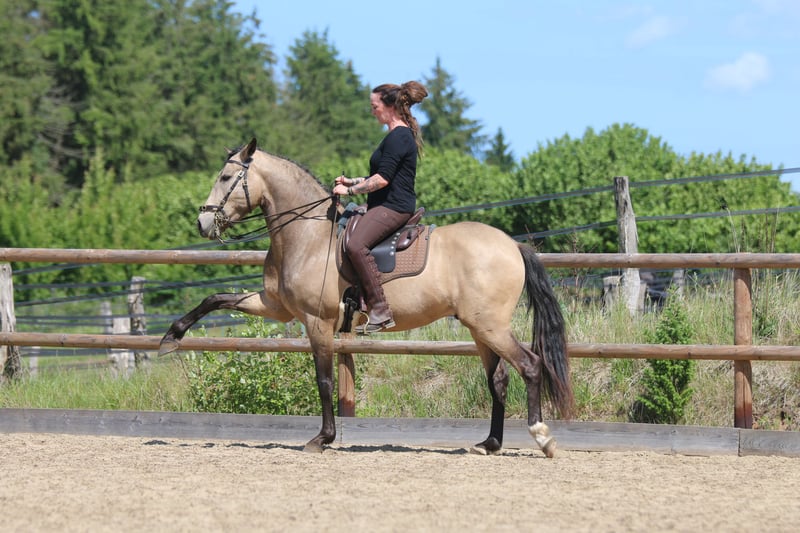 Quantico ist ein absolutes Verlasspferd in einfach jeder Situation. Er ist immer ehrlich und anständig. Er ist sehr rittig und auch an der zirzensik hat er Spaß! Kompliment, Ablegen, spanischer Schritt, Schulhalt, Levade, Steigen, (Piaffe und Passage begonnen) Er hat Spaß an der Dressur und auch Rinderarbeit und Working Equitation begeistern ihn. Er geht super lieb ins Gelände, ist mit anderen Pferden sehr umgänglich. Er ist ein super Allrounder und absolut unkompliziert. Er ist auf verschiedenen Zäumungen geritten kennt sowohl Gebiss als auch gebisslos. Er wird nur in allerbeste und fördernde Hände abgegeben. Er ist mein privat Pferd und geht nur an einen Bestplatz!