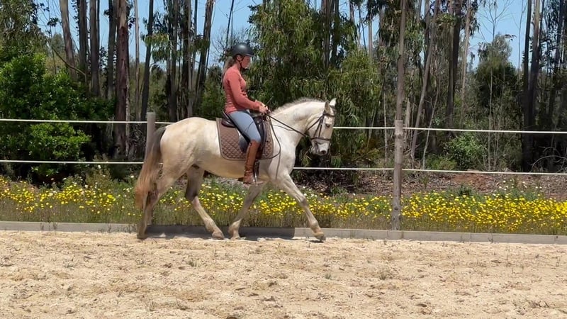 Orion VA ist ein charismatischer 7-jähriger APSL Lusitano Wallach. Wo immer er auch hingeht, wird er die Menschen um ihn herum mit seinem ausdrucksvollen Erscheinungsbild, seinem goldenen Glanz, seiner langen dunklen Mähne und seinem Schwanz beeindrucken. Er ist ein barocker Typ mit einer schönen kompakten Konformation. Er ist sehr brav, selbstbewusst und ruhig, hat Charakter, ist aber super ehrlich und fair. Er liebt es, mit dir zu arbeiten, er liebt Aufmerksamkeit und ist voller Energie. Er hat drei sehr korrekte und ausgewogene Gänge, einen weiten Schritt, einen bequemen Trab und einen super ausgewogenen, aufwärts gerichteten Galopp. Die Arbeit mit ihm ist ein wahres Vergnügen, er ist sehr sensibel und reagiert gut auf die Hilfen von Sitz und Beinen, super leicht in der Hand, nur das Gewicht der Zügel in deiner Hand. Er wird mit einem doppelt gebrochenen Wassertrense geritten und geht überall barfuß ohne Probleme. Er ist der ideale Partner für einen feinen Amateurreiter. Er beherrscht alle Seitengänge, Schulter herein und heraus, Übergänge vom Schritt zum Galopp, Gegenagalopp, beginnt mit fliegenden Wechseln und mit Übungen, die auf die höhere Schule der Versammlung abzielen. Wenn du einen vielseitigen Partner suchst, der Talent für klassische Dressur und Working Equitation hat, ist er das Pferd für dich. Über VA Lusitanos: Wir züchten unsere Pferde mit Sorgfalt, die Fohlen werden auf der Weide geboren, wachsen in der Herde auf, auf hügeligem Gelände, mit Bäumen, Sträuchern, offenen Flächen, Flüssen und einem kleinen See, sodass sie sich an verschiedene Umgebungen gewöhnen und Vertrauen gewinnen. Sie haben immer hochwertiges Heu und ihre Portion an Getreide und Mineralien zur Verfügung. Sie lernen viel gutes Sozialverhalten voneinander, von ihren Müttern und Tanten in der Herde, außerdem ist die tägliche Interaktion mit Menschen ein wichtiger Teil ihrer Ausbildung. Da wir sehr häufig mit unseren Pferden interagieren, entwickeln sie ein tiefes Vertrauen zu Menschen, was alle ihre Interaktionen mit Menschen und anderen Pferden erleichtert. Alle unsere Kunden bestätigen immer wieder, dass unsere Lusitanos in Bezug auf Selbstbewusstsein, Ruhe und Handhabung in allen Situationen herausragend sind. Da wir glauben, dass das Lusitano-Pferd Zeit benötigt, um zu reifen und ihre Knochen- und Muskelstruktur zu entwickeln, beginnen wir mit der Bewertung jedes einzelnen VA Lusitanos, wenn sie 4 Jahre alt sind. Orion begann seine Ausbildung, als er 4,5 Jahre alt war, zunächst an der Longe und am Hand, und seit er 5 Jahre alt ist, auch unter dem Sattel.