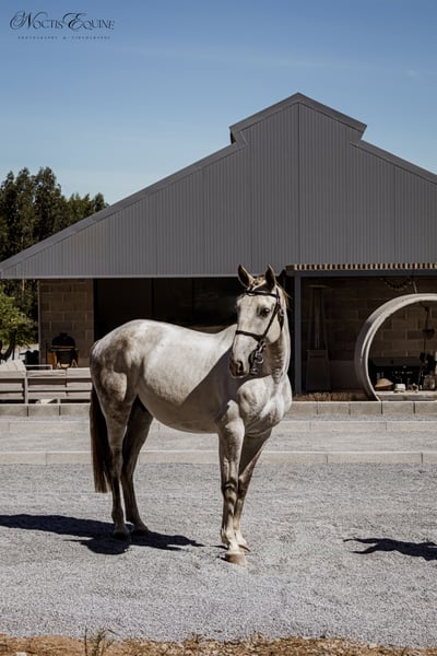 Oberon VA ist das freundlichste und kuscheligste Pferd überhaupt mit einem Herzen aus Gold. Er liebt Aufmerksamkeit und die Zeit mit dir. Er sucht immer nach Wegen, um dich zu erfreuen, und bietet stets sein Bestes für dich an. Er ist lernbegierig und hat eine gute Menge an Energie. Er hat drei gute und bequeme Gangarten, ein natürliches Talent für die Versammlung. Er kennt die seitlichen Übungen, den Gegenkanter, Übergänge vom Schritt zum Galopp, beginnt mit fliegenden Wechseln und mit der Piaffe. Oberon VA ist ein sehr vielseitiges Pferd, ideal für klassische Dressur, Working Equitation und Ausritte, einschließlich einiger Sprünge. Das ideale Pferd für jemanden, der einen wahren Freund sucht, um jeden Tag Spaß zu haben, er ist immer gut gelaunt. Ein einfach zu reitendes Pferd mit bequemen Gangarten, er verzeiht dir kleine Fehler und gibt trotzdem sein Bestes. Ein gutes Familienpferd für einen (Teenager-)Amateurreiter, der seine Reitfähigkeiten zusammen mit diesem Pferd verbessern möchte. Über VA Lusitanos: Wir züchten unsere Pferde mit Sorgfalt, die Fohlen werden im Freien geboren, wachsen in der Herde auf, auf hügeligem Gelände, mit Bäumen, Sträuchern, offenen Flächen, Flüssen und einem kleinen See, sodass sie sich an verschiedene Umgebungen gewöhnen und Vertrauen gewinnen. Sie haben immer qualitativ hochwertiges Heu und ihre Portion an Getreide und Mineralien zur Verfügung. Sie lernen viel gutes Sozialverhalten von einander, ihren Müttern und Tanten in der Herde; neben der sozialen Interaktion mit anderen Pferden ist auch die tägliche Interaktion mit Menschen ein wichtiger Teil ihrer Ausbildung. Da wir sehr häufig mit unseren Pferden interagieren, entwickeln sie ein tiefes Vertrauen zu Menschen, was alle ihre Interaktionen mit Menschen und Pferden erleichtert. Alle unsere Kunden bestätigen immer wieder, dass unsere Lusitanos in Selbstbewusstsein, Gelassenheit und Umgangsfreundlichkeit in allen Situationen herausragen. Da wir glauben, dass das Lusitano-Pferd Zeit benötigt, um zu reifen und ihre Knochen- und Muskelstruktur zu entwickeln, beginnen wir mit der Bewertung jedes einzelnen VA Lusitanos, wenn sie 4 Jahre alt sind. Oberon VA begann seine Ausbildung, als er 4,5 Jahre alt war, zunächst an der Longe und am Hand, und seit er 5 Jahre alt ist, auch unter dem Sattel.