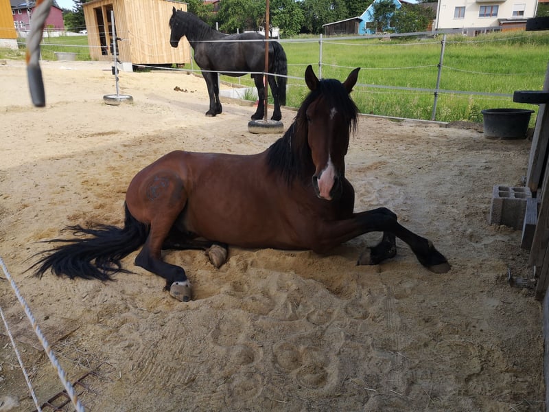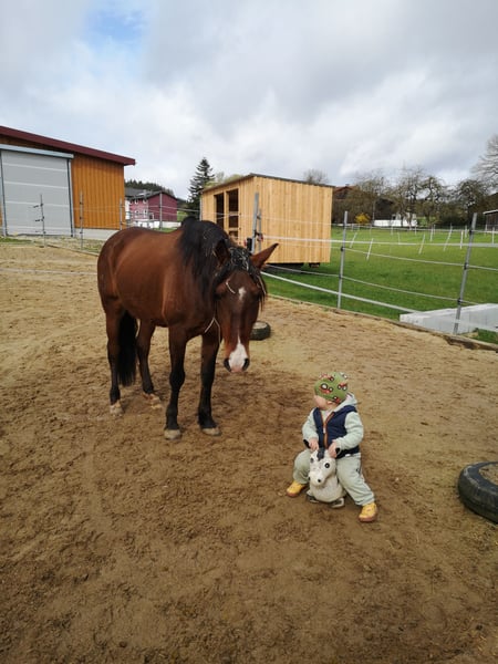 Nordeste ist ein wunderschöner, 8-jähriger, 1,50m kleiner Lusitano mit Bluebook vom ursprünglichen, barocken Typ der sich stark auf eine Person fixiert und mit dieser nach einer Kennenlernzeit neue Erfahrungen sammeln möchte. Er möchte regelmäßig gefordert und gefördert werden und das kann ich ihm als junge Mama einfach nicht bieten. Er wurde klassisch ausgebildet und ist sehr fein zu reiten, dabei möchte er stets gefallen und ist immer bemüht. Da ich die Energie die er mitbringt unterschätzt habe und auch mein Zeitmanagement nicht so lief wie ich mir das alles gedacht hatte, bin ich das letzte halbe Jahr nur noch selten geritten und habe ihn nur noch longiert. Wir haben verschiedene Kurse besucht von Freiarbeit über Gelassenheit und Trail, da wir an solchen Unternehmungen und der Abwechslung großen Spaß finden. Zum Ausgleich läuft er gerne neben dem Rad her und fühlt sich in der Natur rundum wohl und entspannt. Auf unserem landwirtschaftlichen Anwesen ist immer viel geboten sodass er Rinder, Hunde und Kinder kennt. Insbesondere landwirtschaftliche Maschinen jeglicher Art und Größe machen ihm nichts aus. Ich muss leider feststellen dass ich neben Familie, Kindern, Landwirtschaft und zwei älteren Pferden einfach zu wenig Zeit für Nordeste und sein feuriges Temperament finde. Deswegen trenne ich mich von ihm und hoffe das er einen neuen Besitzer bekommt der ihm die Zeit und Aufmerksamkeit schenkt die er verlangt. Bei uns lebt er im Offenstall mit 24h Heu und je nach Wetterlage täglichem Koppelgang. Er ist barhufer und regelmäßig geimpft, entwurmt und Zahnkontrolle gemacht. Prophylaktisch kommt einmal im Jahr die Chiropraktikerin. Im Preis inbegriffen sind ein Maßsattel der im Frühjahr 25 neu gekauft wurde und ein Semizaum mit passendem Gebiss.