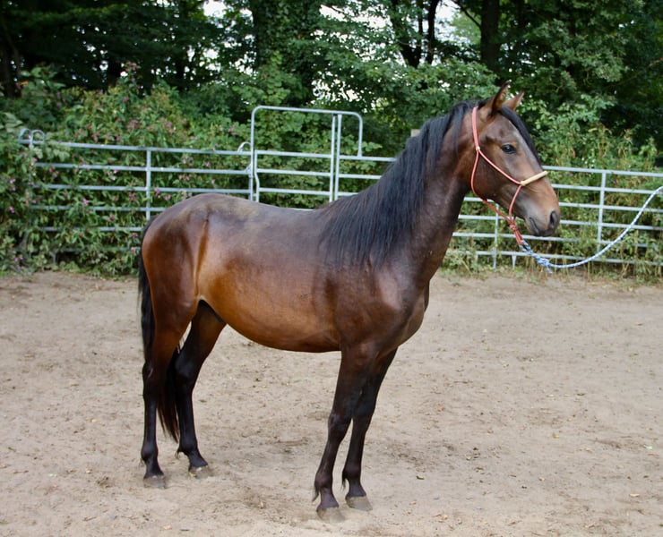 Paso Horse Stallion: Mangalarga Marchador x Paso Fino – Rare Combination for Breeding & Sport. Beautiful brown young stallion with a lot of mane and a baroque appearance, registered as a Paso Horse with papers. Combines the light-footedness, elegance, and eagerness to learn of the Paso Fino with the robustness, calmness, and harmonious conformation of the Mangalarga Marchador. Even now, he shows himself to be light-footed, well-balanced, and attentive – the best prerequisites for a comfortable, versatile riding horse. His harmonious build and friendly character also make him interesting for future breeding purposes. A rare eye-catcher with a future – for lovers of special Paso horses. For serious inquiries and further questions, we are happy to provide a personal exchange and arrange a viewing appointment.