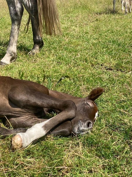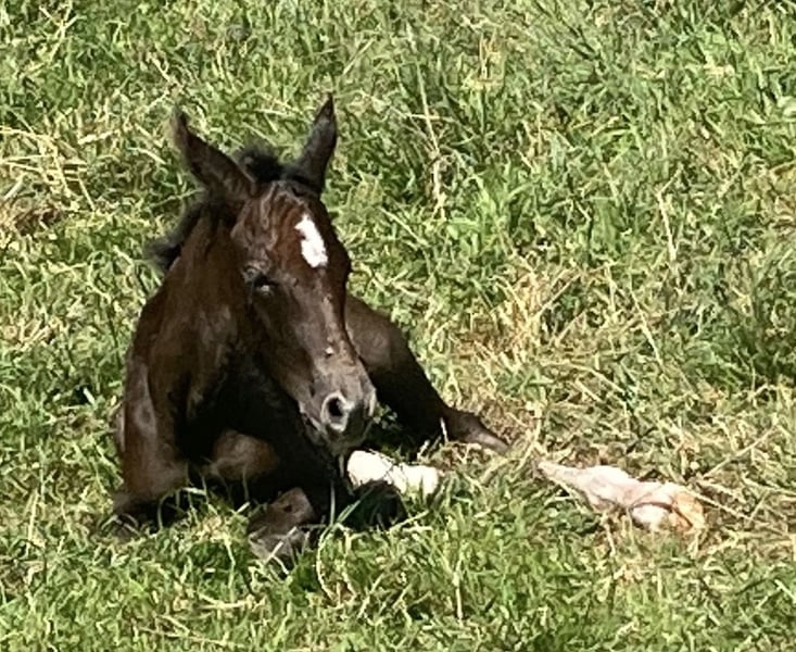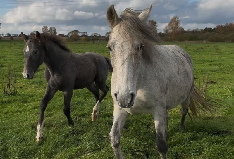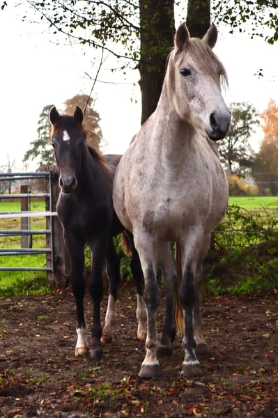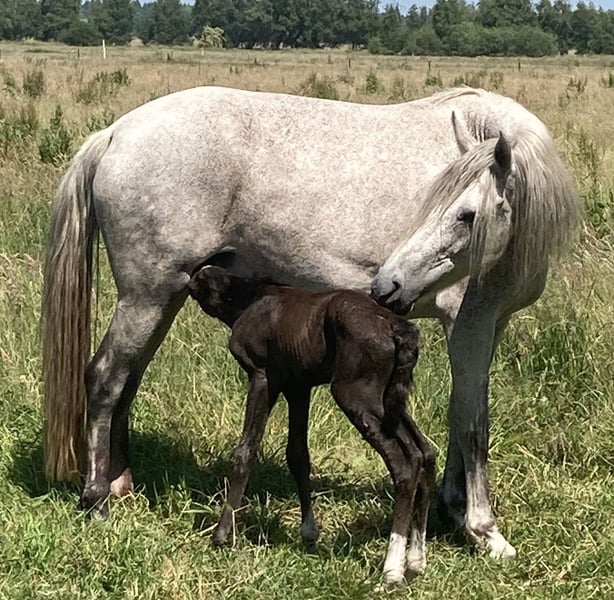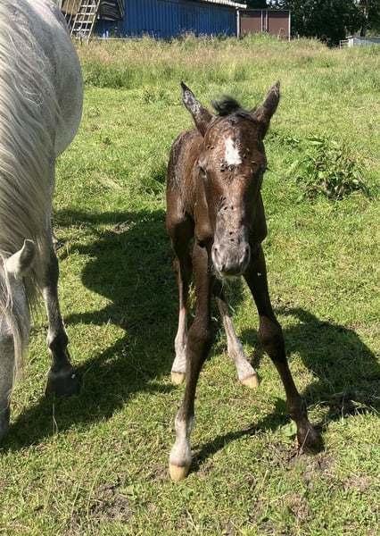 Earl Grey vom Hartungshof, geb.am: 13.06.2025 zeigt sich von Anfang an als "echter Graf", sehr charmant, mit guten Manieren und einer "adeligen Haltung" (sehr guter natürlicher Aufrichtung). Ausgestattet mit sehr guten Bewegungen und einer Gangveranlagung zu Marcha Batida und Marcha Picada wird er in Verbindung mit seiner zu erwartenden Größe ein für einen Marchador recht imposantes Pferd werden und mit seinem liebenswürdigen Charakter ein Freizeitpartner par excellence. Auch Earl Grey hat, wie alle unsere Fohlen das Fohlen ABC gelernt, ist geimpft gegen Influenza, Tetanus und Herpes, ist regelmäßig entwurmt und alle 7 Wochen erfolgt Hufkorrektur. Auch er gehört zur ca. 20-köpfigen Gruppe von Pferden, die zwischen 6 Monaten und 29 Jahren alt sind und in Offenstall, Weidezelten auf dem Paddock und einer großen Weide leben. Und ich muß auch hier sagen, die Anzahl Fotos hält sich sehr in Grenzen, da ich in 2025 sehr oft aus gesundheitlichen Gründen nicht in der Lage war zu fotografieren, insbesondere ab Mitte Juli bis in den November hinein.