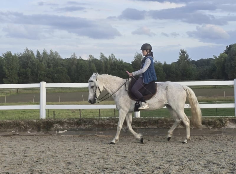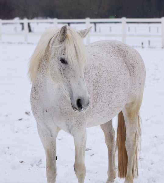 Feli ist eine wirklich wunderbare kleine Stute. Ich habe sie mit 2,5 Jahren gekauft und sie hat praktisch nur gute Erfahrungen mit Menschen gemacht. Daher geht sie auch immer gerne offen auf neue Bekanntschaften zu. Sie ist super freundlich, lernwillig und kooperativ. Nur manchmal dramtaisiert sie etwas und tut so, als ob ich sie ihr leben lang verprügelt hätte. Ein Halfter abziehen, wenn der Strick noch angebunden ist? Dass geht ja gar nicht!!!! HILFEEE!!! zumindest an drei Tagen im Monat ist das ein totales Unding. :D Gefährlich wird sie dabei aber nie, wenn ihr der Landwind Flausen in den Kopf setzt. ;) Ansonsten ist sie eher entspannt und alles andere als schreckhaft. Daher kann man auch ohne große Sorge mal ein Kind auf ihren Rücken setzen. Nur als Kinderpony sollte sie jedoch nicht gekauft werden. Sie ist nämlich sehr sensibel und baucht jemanden, der feinfühlig mit ihr umgehen kann. Vom Boden wie auch vom Sattel aus. Eine zu grobe Behandlung stresst sie zu sehr und sie geht dabei eher nach innen. Frisst es in sich hinein und wird unglücklich. Das hat die süße Maus nicht verdient. Sie ist fein geritten und achtet sehr gut auf Gewichtshilfen und auch Schenkel. Im Maul darf man sie gerne korrigieren, doch sie sollte nicht in permanenter Anbindung geritten werden, das mag sie nicht und macht sich dann fest. wir haben derzeit eine Westerntrainerin, die ihr sehr gut tut. Sie ist also ein Freizeitpferd, an dem auch ehrgeizigere Reiter Ihren Spaß finden. Sie läuft Seitengänge in allen Gangarten und übt sich immer weiter an der westerntypischen Durchlässigkeit. Man kann bei ihr sicher sein, dass sie immer ihr bestes gibt und das es ein Reiterfehler ist, wenn etwas nicht klappt, oder sie eben, wie jedes Pferd, mal etwas hat. Es macht wirklich Freude, mit ihr zu arbeiten. Sie ist wirklich wirklich ein ganz tolles Pferdchen, und ich würde sie niemals abgeben, wenn es finanziell nicht gerade eng für mich würde. Jetzt fragst du dich sicher, warum ist sie bei all ihrer Wunderbarkeit und dem guten Alter so günstig? Natürlich gibt es dafür gründe. So sensibel ihr Charakter ist, so sensibel auch ihr Körper. Sie hat EMS und hatte vor 2 Jahren auch ihren ersten und einzigen Reheschub. SO kam es überhaupt raus. Seither hat sie gut abgespeckt und ihre Werte sind alle im Normbereich. Aber es ist dabei rausgekommen, dass sie wirklich überhaupt kein Gras fressen darf. Wer sich denkt, das arme Pony, hat sie nicht erlebt, als sie auch nur wenige Stunden mit Fresskorb auf der Weide war. Auch das wenige Gras sorgte dafür, dass sie ganz schlapp und müde war, weil der Stoffwechsel viel gegenkompensieren musste, ohne dass das Nüchterninsulin erhöht war. Daher steht sie nun auf einem Rehepadock und es geht ihr da super. Das nächste, wahrscheinlich aber deutlich kleinere Thema ist, dass sie leichtes equines Asthma hat. Mit ihrer jetzigen Haltung mit ganz viel draußen sein und bedampften Heu ist sie aber symptomfrei. Alternativ könnte man ihr das Heu im Sommer oder wenn das Heu einfach staubig ist, auch nass machen oder auswaschen, was auch für die Zuckerarme EMS Ernährung gut wäre. Grundsätzlich macht mir das Asthma weniger Sorgen, da sie es vermutlich (laut bildgebenden Verfahren) schon ziemlich lange hat aber die meiste Zeit auch mit normalen Pferdemangement (Bewegung, viel frische Luft, gute Heuqualität) keine Symptome hatte. Ich suche für Sie ein für immer zuhause wo es ihr richtig richtig gut geht. Sie wird auch nur mit Schutzvertrag abgegeben und es ist mir auch sehr wichtig, die zukünftige Besitzerin einigermaßen gut kennen zu lernen. Sie war damals schließlich die Erfüllung eines großen Traumes und ist ja auch jetzt noch mein Herzpony.
