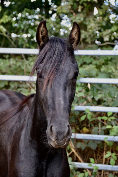 For sale is a promising Paso horse gelding: Mangalarga Marchador x Paso Fino. Very handsome black gelding, registered as a Paso horse with papers. He combines the light-footedness, elegance, and eagerness to learn of the Paso Fino with the robustness, calmness, and harmonious physique of the Mangalarga Marchador. Even now, he shows himself to be well-balanced, harmonious, and attentive with a well-rounded character – the best prerequisites for a comfortable, versatile riding horse. The gelding is well-socialized and has already gained initial experience in groundwork. He displays a natural curiosity and willingness to learn, making him a perfect partner for future adventures. If you are interested in him or would like more information, please do not hesitate to contact us. We look forward to your message!