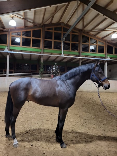 Vendesi stallone Warmblood Mecklenburg – un cavallo da dressage promettente In vendita un magnifico stallone Warmblood Mecklenburg, nato nel 2023. Il giovane stallone, di colore nero-marrone, si distingue per la sua elegante presenza e il promettente potenziale nel dressage. Premiato come miglior stallone da dressage Mecklenburg ai Mecklenburg Days Il giovane stallone si distingue per il suo aspetto attraente e il temperamento equilibrato. Per ulteriori informazioni o per manifestare interesse, sono a sua disposizione.