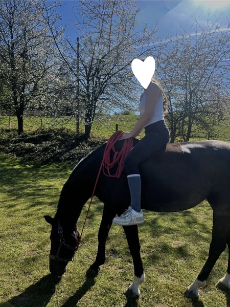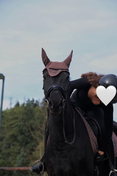Our beautiful ten-year-old dark bay mare, Mirabell, is truly a horse from the heart – sensitive, honest, and always eager to please her human. Anyone who gets to know her quickly notices that she is something special: a horse that gives her heart with calmness, trust, and patience, and in return, offers her handler attention and joy in every situation. Mirabell has a strong character and a refined sensitivity. When ridden by an experienced, calm rider, she reveals her best qualities: motivated, eager to learn, and full of enthusiasm. In daily handling, she is straightforward – she stands patiently for grooming and tacking, reliably gives her hooves, and enjoys spending time with her person, especially when being groomed and cuddled. In dressage, she competes at L-level, showing joy in her work and learning new movements with motivation. Currently, she is being trained in jumping at A-level, where she has a lot of fun and reliably clears the fences. She responds well to her rider, works with focus and motivation, and demonstrates that with the right guidance, she can continue to develop further. This makes her a versatile horse, equally suitable for dressage and jumping enthusiasts. In the field, Mirabell is a dependable companion – attentive yet relaxed, and she enjoys hacking out. Whether in dressage, jumping, ground work, or leisurely rides, she is always motivated and eager to please her rider. She prefers to be kept in an open stable with plenty of movement but also adapts well to box stall housing with regular turnout. Currently, she lives in a herd of mares, is barefoot, well-behaved at the blacksmith, and well cared for – regularly dewormed, vaccinated, and dental checked. Mirabell is looking for an experienced owner who is calm, patient, and empathetic. Her future rider should weigh no more than 70 kg and enjoy working with her to continue her progress. She is not suitable for beginners, but for someone with feel and experience, she will become a partner you can rely on at all times. The right home is our top priority – space comes before price. The price is, of course, negotiable for the right home. For a trial ride, we ask for €20, which will be deducted from the purchase price. Mirabell is a horse with heart, charisma, and a love for work – a loyal partner for someone seeking an honest, sensitive, and versatile horse to grow with.
