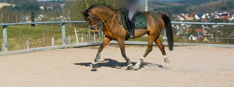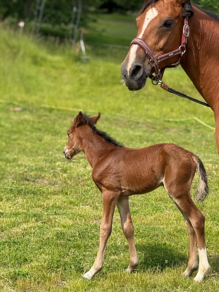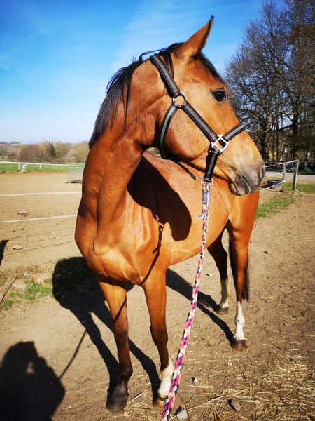 Kleine Stute mit großem Herz sucht ihren Lieblingsmenschen! Sie suchen keinen „Massentyp“, sondern eine feine Lady mit dem gewissen Etwas? Diese hellbraune Stute (roter Pass/Springabstammung) besticht durch ihre Vielseitigkeit und ihren wachen Geist. Da sie aufgrund ihres zarten Gebäudes bewusst spät angeritten wurde, ist sie unverbraucht und bereit für ein neues Kapitel. Das Wichtigste im Überblick: • Typ: Kompakt, zart und drahtig – ein Pferd für den feinen Reiter, Umsteiger oder Damen. • Ausbildung: Vor der Zuchtpause auf solidem E, begi. A-Niveau im Springen vorgestellt, zeigt sich aber auch in der Dressur mit einer sehr ansprechenden Silhouette und hat dort eindeutig Talent. • Status Quo: Hatte letztes Jahr ein Fohlen und befindet sich aktuell noch im gemütlichen „Mami-Modus“. Sie muss nun muskulär wieder aufgebaut und antrainiert werden. • Charakter: Sensibel, reaktionsschnell und mit einer natürlichen Ausdauer sowie gesundem Vorwärtsdrang („Go“) ausgestattet. Was ich für sie suche: Sie ist kein Anfängerpferd und ausdrücklich nicht für den Schulbetrieb geeignet. Ich wünsche mir für sie eine Bezugsperson, die gefühlvolle Hilfengebung schätzt und Lust hat, sie nach der Pause geduldig wieder fit zu machen. Momentan wird sie bereits wieder etwas geritten. Besonderheit: Tausch möglich! Da ich (Stand aktuell ) in den nächsten Jahren nicht selber aufs Turnier komme und ich sie nicht bei uns in der Zucht (Reitponys) sehe, ist ein Tausch gegen ein passendes Pony durchaus denkbar. Wenn Sie einen braven Wallach besitzen, mit dem meine Kinder selbstständig umgehen können, oder eine sportliche Stute mit vollem Papier, freue ich mich auf Ihren Vorschlag! Unter Umständen wäre auch ein gekörter Hengst denkbar, dann aber erst ab Mitte des Jahres, da vorher die Einstellmöglichkeit fehlt. Dieser muss gut erzogen sein und andere Pferde kennen ,da ich bereits einen Hengst besitze.
