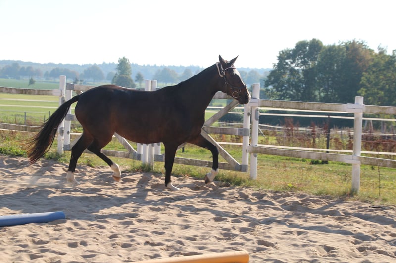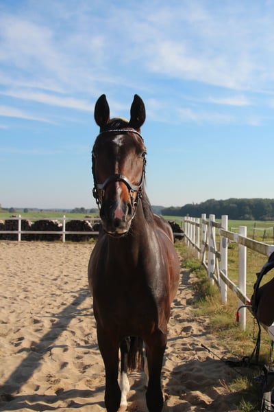 Verkaufe elegante Mecklenburger Warmblut-Stute Zum Verkauf steht eine wunderschöne, schwarzbraune Mecklenburger Warmblut-Stute, geboren im Jahr 2019. Mit einem Stockmaß von 162 cm vereint sie Gelassenheit und Eleganz. Sie ist bestens für die Freizeit geeignet und begeistert durch ihr freundliches Wesen und ihre vielseitigen Einsatzmöglichkeiten. Diese charmante Stute ist der ideale Begleiter für alle, die ein zuverlässiges und angenehmes Pferd suchen. Ob Ausritte, Spaziergänge oder entspannte Freizeitgestaltung – sie überzeugt durch ihre Bereitschaft und ihren angenehmen Charakter. Durch ihre PSSM 2 Erkrankung ist sie leider nicht für den Sport- oder Zuchteinsatz geeignet. Für den Freizeitbereich ist sie trotzdem ein sehr qualitätsvolles Pferd! Bei Interesse oder für weitere Informationen stehe ich gerne zur Verfügung. Kontaktieren Sie mich, um mehr über dieses besondere Pferd zu erfahren! Es gilt Platz vor Preis.
