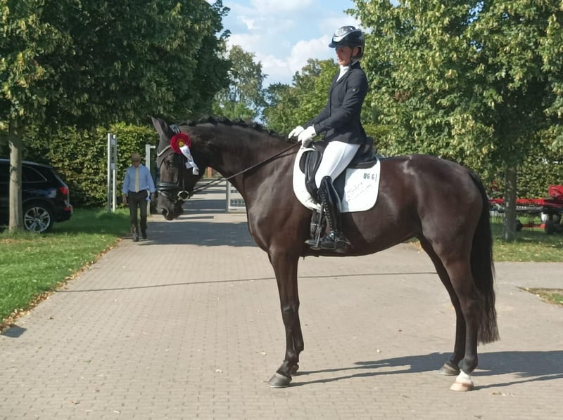 Donquita: - Kompakte Dressurstute mit Qualität in allen drei Grundgangarten - Wirklich Sitzbequem und sehr schön durch den Körper schwingend - Mit positiver Arbeitseinstellung und sehr guter Versammlungsbereitschaft - Im Umgang sowie unter dem Sattel mit sehr gutem Interieur - Von Damenhand zu reiten - Zahlreiche Siege und Platzierungen bis Dr. S* - Donquita ist im Gestüt Ganschow geboren, aufgewachsen und schonend ausgebildet
