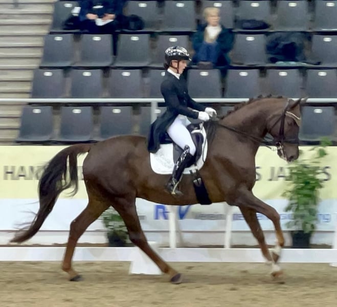 - Langbeiniger Dunkelfuchswallach mit drei überragenden Grundgangarten - Mit Talent und Tragkraft für die versammelnden Lektionen - Dabei angenehm zu sitzen und von Damenhand zu reiten - Zahlreiche Siege und Platzierungen bis Dr. S **** - Grand Prix platziert - Silberglanz ist im Gestüt Ganschow geboren, aufgewachsen und schonend ausgebildet