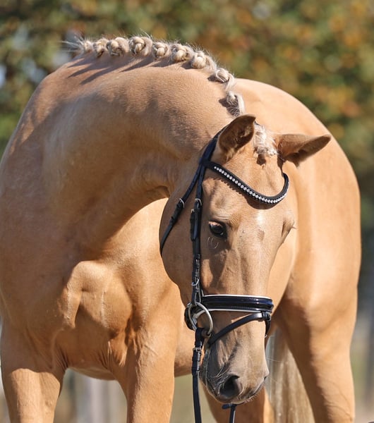 Direkt vom Aufzüchter und bereits geröntgt: Aufsteigen, losreiten, wohlfühlen – genau das beschreibt Veit. Zudem besitzt er diese Präsenz und besondere Ausstrahlung, wie man sie nur selten findet. Dies ist gepaart mit exzellenten Reiteigenschaften und einem erstklassigen Charakter. Ob beim Anreiten oder beim ersten Mal und gleich ganz allein auf dem unbekannten Außenplatz – Veit bleibt stets brav und kooperativ. Sein Schritt ist von außergewöhnlicher Qualität, der Trab elastisch und mit natürlicher Kadenz und der Galopp kraftvoll mit viel Raumgriff und aktivem Hinterbein. Veit bringt alles mit für eine erfolgreiche Karriere im Dressurviereck. Dank seiner Souveränität passt Veit bereits jetzt zu Reitern ab sicherem A-Niveau und ist durch seine menschenbezogene, ausgeglichene und lernfreudige Art auch für ambitionierte Jugendliche oder Familien geeignet, die sich einen verlässlichen Partner mit allen Möglichkeiten wünschen. Veit stammt aus einer bewährten Mutter, die bereits zwei gekörte Hengste hervorgebracht hat. Sein Vater Vivaldos ist ein Sohn des Ausnahmevererbers Vivaldi, der laut WBFSH-Ranking zu den Top Ten der weltbesten Dressurvererber zählt. Vivaldos wurde als Prämienhengst der Hannoveraner Körung ausgezeichnet und bei den Oldenburgern zum Hauptprämiensieger gekürt. Dank seiner hervorragenden Vererbung überzeugt er bereits im Alter von sieben Jahren mit einem Zuchtwert der Spitzenklasse von 135 (Jungpferde). Gute Röntgenbilder liegen vor. Sie finden unseren Landwirtschaftsbetrieb nur 30 Minuten von Berlin entfernt. Hier ziehen wir hochklassige Fohlen artgerecht im Herdenverband groß, auf weitläufigen Weiden mit viel Platz und ganzjähriger Bewegung. Mit Zeit und Bedacht begleiten wir sie auf dem Weg zu verlässlichen Reitpferden. Wenn Sie Veit und unsere anderen Nachwuchspferde kennenlernen oder mehr über sie erfahren möchten, freuen wir uns über Ihren Anruf unter 03301 577 2585! *** Der Weg lohnt sich! Weitere Nachwuchspferde siehe unten in unseren anderen Inseraten. ***