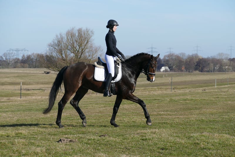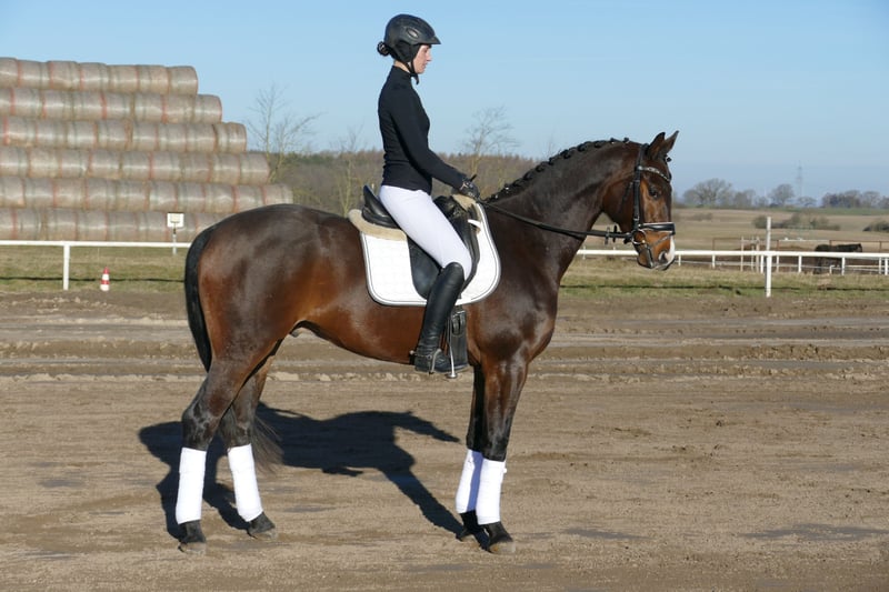 Bumblebee: - Moderner Reitpferdetyp mit schönem Seitenbild - Mit Qualität in allen drei Grundgangarten - Leichtrittiges gut zu sitzendes Damenreitpferd - Auch am Sprung mit Talent und Übersicht - Platziert in Reitpferde und Drpf: A - Auf dem Weg zur Kl.L - Bumblebee ist im Gestüt Ganschow geboren, aufgewachsen und schonend ausgebildet