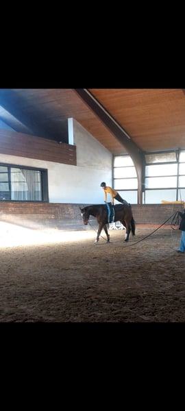 Schweren Herzens in liebevolle Hände zu vergeben, und auch nur wenn alles passt! Nach langem Überlegen habe ich mich schweren Herzens dazu entschlossen, für mein Riesenbaby Aris ein neues, liebevolles Zuhause zu suchen. Aris ist ein Mecklenburger-Wallach, geboren am 21.03.2018, mit einem Stockmaß von 1,73 cm Ich habe ihn selbst gezogen – daher liegt mir sein weiteres Wohlergehen besonders am Herzen. Abstammung & Potenzial • Vater: Arko Junior • Mutter: Pinocchio – Pilot Aris besitzt hervorragende Grundgangarten, viel Potenzial und eine erstklassige Abstammung, die sicher auch für die Zukunft vielversprechend ist. Er befindet sich aktuell noch im Profiberitt bis zum 1.01 und wird dort weiter im Springen gefördert und ausgebilde Eine kleine Akku wurde am 15.12 gemacht und ist ohne Befund super schönes Pferd, Gesund mit stabilen Beinen wie man sich das wünscht meinte der Tierarzt! Aris befindet sich im Moment auf auf ein Solides A Niveau! Charakter & Umgang Aris ist im Umgang ein absoluter Schatz – freundlich, menschenbezogen und sehr verschmust. Er liebt Aufmerksamkeit, steht gern im Mittelpunkt und bringt mit seiner charmanten Art jeden zum Lächeln – ein echter Clown im positiven Sinne. Beim Reiten zeigt er viel Schwung und Energie, weshalb er einen erfahrenen Reiter benötigt, der ihn gezielt unterstützt und ihm Sicherheit gibt. Im täglichen Umgang (Hufschmied, Tierarzt, Entwurmung usw.) ist er absolut brav und unkompliziert. Ausbildung & Haltung • Schonend angeritten mit 4 Jahren • Bodenarbeit, Doppellonge, Fahren vom Boden, Dualgassen, Schrecktraining • Wird überwiegend auf dem Platz und im Gelände (in der Gruppe) geritten • Robust aufgewachsen in gemischter Herde: im Winter auf 3 ha, im Sommer auf 11 ha Weide • Kastriert am 03.09.2020 Aris ist kein Anfängerpferd, aber für einen ambitionierten, einfühlsamen Reiter ein treuer Partner mit großem Potenzial. Gesundheit & Pflege • Barhuf, regelmäßiger Schmied alle 8 Wochen • Influenza & Tetanus geimpft • Zahnbehandlung im Mai 2025 • Osteopathisch durchgecheckt im August 2025 • Keine bekannten Erkrankungen oder Verletzungen (nur übliche Weideblessuren) Einsatz & Wunschplatz Ich verkaufe Aris als Freizeitpferd, da er bei mir auch ausschließlich so eingesetzt wurde. Mit weiterer Förderung wäre aber sicher auch der Start auf kleineren Turnieren denkbar. Ich wünsche mir für ihn ein Zuhause mit viel Auslauf, Weidegang und Herz, wo er nicht als Sportgerät gesehen wird, sondern als Partner und Freund. Ein Kennenlernen und Probereiten (auf eigene Gefahr) ist nach Absprache selbstverständlich möglich. ❌ Kein Notverkauf, nicht zur Verfügung! ☎️ 01520 3643167 Liebe Grüße Anja