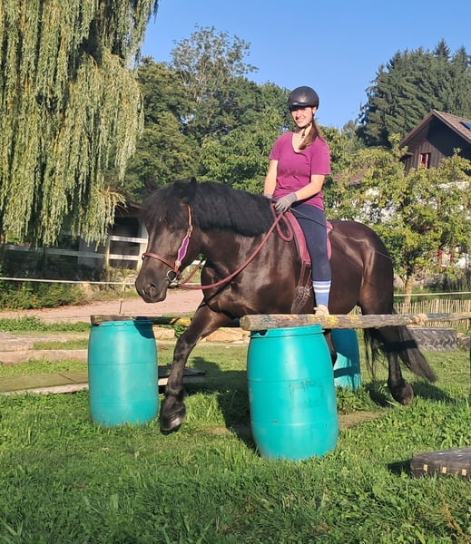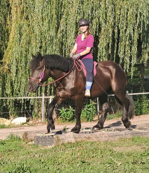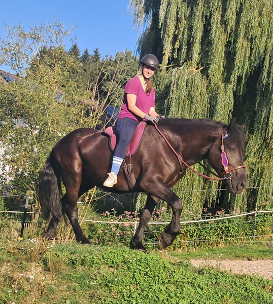 Inez – a Dream Horse! A truly gentle soul horse with a calm and friendly nature. Her serenity and composure help forget everyday stress and allow you to be fully present with the horse. She performs her tasks honestly and attentively, always eager to please and do everything correctly. A horse that brings happiness, is easy to ride, sits softly, and can be enchanted by her charm. Previously driven in pairs, she is 5.5 years old, 16.2 hh. Suitable for trail riding, outdoor adventures, leisure riding, therapy riding, and driving. Both English and Western riding are possible. Accustomed to open stable and herd life, stable confinement is no problem. Equine passport available. All our horses are familiar with groundwork, varied terrain, cars, agricultural machinery, as well as cows, donkeys, sheep, pigs, dogs, cats, and chickens. For more information and to arrange a viewing, please call 08536-2890292 (voicemail available) or 0157-78378455 (no mobile network at the farm). Please no private messages, emails, or WhatsApp inquiries! Sunday is our rest day. Accessories and transport can be arranged at favorable rates. Each customer is granted a contractual six-week exchange period. Prices are fixed. Requests for installment payments are not accepted. Customers who arrive with a trailer and take the horse immediately will receive a €100 discount. Upon purchase, a €1,000 cash deposit is due. If you wish to take the horse immediately, full payment is required. We offer a trial ride with two horses of your choice, so you can get to know your dream horse and see if it’s the right fit. Each appointment costs €35, whether riding, leading, preparing, or walking... each additional rider (friend, partner, sister, trainer) pays the same if riding along; just watching costs €20, as it still takes time. The fee will be refunded on the same day if you purchase the horse. Due to multiple incidents, we kindly ask for honest information regarding the rider’s weight. If false information is provided, we reserve the right to refuse a trial ride on-site. For the well-being of our horses, we do not want to exceed 120 kg. Since this is a living animal, these are only impressions from the caretaker and do not constitute guaranteed characteristics of the horse. Additional horses/ponies are available in my other listings or upon request.