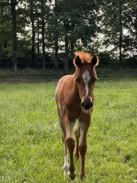 Wir verkaufen, wenn alles zu 100% passt, unseren kleinen ,,Dobby“. Er ist im Mai diesen Jahres geboren und kann dementsprechend im Dezember abgesetzt werden. Aufgrund des Stockmaß der Eltern würden wir vermuten, dass er mal etwas über 140cm groß wird. Dobby ist von ersten Tag an mit viel Selbstbewusstsein ausgestattet und begegnet allen neuen Situationen und Pferden immer mit Neugier anstelle von Unsicherheit. Aktuell hat er als Spielkameraden unseren 4-jährigen Araber. Für sein zukünftiges Zuhause wünschen wir uns, dass er auch dort jemanden zum spielen hat. Bei der Eintragung hat er sich von seiner besten Seite gezeigt und erhielt eine Prämie. Er kennt natürlich das Fohlen ABC und wird von uns jeden Tag morgens zur Weide gebracht und abends wieder reingeholt. Dabei ist er artig, dennoch braucht er konsequente Erziehung, da er sonst gerne mal seine Grenzen austestet. Für eine sportliche Zukunft hat er beste Vortaussetzungen: Sein Vater, Django 468, war bisher bis Springpferde A** platziert und stammt von Del Piero 25 ab, welcher bei einem Stockmaß von 143cm bis M** Schleifen sammeln konnte. Dobbys Mutter ist unsere Edelbluthaflingerstute Honey Bee. Sie ist schon als Fohlen zu uns gekommen, wurde von uns ausgebildet und hauptsächlich freizeitmäßig geritten. In den letzten Jahren wurde sie von einigen Kindern geritten und war dabei immer zuverlässig. Aufgrund unserer Größe haben wir sie nie im Bereich des Springen gefördert, im Freispringen hat sie sich aber sehr talentiert gezeigt und sprang ohne Probleme bis 120cm. Dementsprechend dürfte Dobbys Springkarriere nichts im Weg stehen. Wir wünschen uns, dass er liebevolle Besitzer findet, die seine Talente sobald er alt genug ist fördern. Falls er Kinderpony wird und irgendwann zu klein sein sollte, würden wir uns wünschen, ihn zurückkaufen zu können, da wir nicht wollen, dass er oft sein Zuhause wechselt.