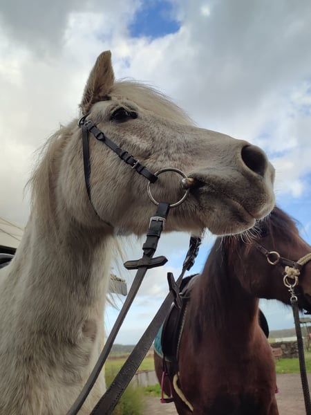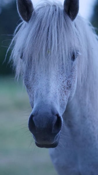 Nikki is an 11-year-old, 1.34 m tall grey (fly) pony mare, likely a mix of Shetland, Icelandic, and Welsh breeds. We acquired Nikki from a riding stable where she was used with foals and in daily operations. If she was pinched on the belly during grooming or showed ears back because she found something uncomfortable, she was often met with a whip response, which over time led to some mutual tension. At our place, she is now groomed and tacked up without issue, though she sometimes gives a sideways glance. We thought a smaller riding stable would suit Nikki, but she actually needs a consistent handler. Currently, she is mostly ridden by her riding partner, with only 1-2 sessions per week. Unfortunately, that is too little for her age, and it’s noticeable that she would like to do more. Here are more specific details: She is ridden for leisure on the riding arena and in the field. We also go on trail rides, where she has proven to be very good and confident. New environments are no problem for her, and she clearly enjoys exploring new routes. Groundwork, lunging, and long-rein work are familiar to her; she was also driven by her previous owners. However, we haven’t continued this due to lack of a suitable carriage and time constraints. If the riding arena is available and she has enough energy, Nikki is sometimes allowed to run freely or small jumps are set up, which she handles well. Nikki is a very curious pony and generally enjoys activity, which she currently doesn’t receive enough of. As mentioned, she would do best with one or two trusted handlers with whom she feels secure. It should be someone with a gentle but firm demeanor, ideally children or teenagers aged 11 or 12 and above. Due to her pony-like head and her history, she needs someone with horse experience and a loving but assertive approach. Prior experience doesn’t have to be extensive, just a basic understanding of horse behavior. With the right team, she can grow and develop further.