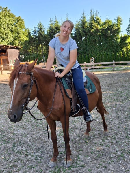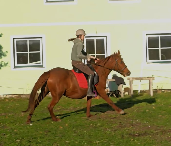 Zum Verkauf steht unsere Sportpony-Stute Dakota, die wir seit 2 Jahren besitzen. Als wir sie gekauft haben, war sie tragend – das Fohlen behalten wir, daher geben wir Dakota nun in ein neues Zuhause ab. Bei der Vorbesitzerin wurde sie hauptsächlich gefahren, bei uns wurde sie überwiegend im Gelände geritten. Dabei zeigt sie sich brav, fleißig und motiviert, auch mit jugendlichen Mitreiterinnen. In der Bodenarbeit braucht sie noch etwas konsequente Beschäftigung. Beim Führen oder Longieren versucht sie gelegentlich, sich loszureißen. Sobald sie merkt, dass das nicht funktioniert, ist sie sofort wieder brav. Gesundheit / Pflege: Zähne gemacht regelmäßig geimpft regelmäßig entwurmt Haltung: Offenstall gewohnt (Stutengruppe) rangniedrig und verträglich Mit etwas mehr Arbeit und Vertrauen kann Dakota ein tolles Freizeitpferd und eventuell auch ein Schulpferd werden. Bei Interesse gerne melden.