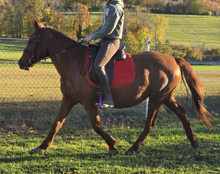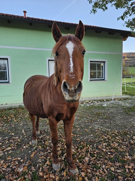 I am looking for a suitable home for my beloved Dakota. 💛 Dakota is a 2014-born, chestnut-colored Hungarian small horse mare (approximately 14.8 hh). She is a very special soul – calm, sensitive, and somewhat reminiscent of "Eeyore" from Winnie the Pooh 🩵: friendly, patient, but with a gentle, slightly "sad" expression. Dakota is not a typical cuddly horse; she prefers a quiet and predictable environment. She tends to avoid conflicts and needs a person who approaches her with calmness, trust, and patience. Whoever wins her heart will gain an honest, loyal partner by their side. 🤍 She is mainly ridden in the field for leisure and has been ridden by teenagers; she was also driven in the past. She is farrier-friendly, loadable, healthy, regularly vaccinated, and dewormed. After her foal period, we have already resumed riding, and she is behaving well and motivated. With a bit more patience, she can certainly be fully brought back into work. ✨ Farrier-friendly & loadable ✨ Healthy, regularly vaccinated & dewormed Unfortunately, her pedigree is unknown. I wish for Dakota a home where she is understood and simply given the time to be herself. 🫶