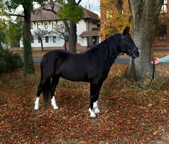 A 5-year-old, 14.1 hh beautiful black mare! She is much more than just a pony – she is a companion who makes every day a special experience. With her friendly nature and gentle gaze, she immediately wins hearts. Her movements are elastic and well-balanced, and her gaits are comfortable and smooth – riding her is pure pleasure. And she’s definitely not temperamental! Despite her young age, she is very intelligent, quick to learn, and always eager to work with her rider. Whether in the arena or on the trail, she remains consistently reliable and confident. She stays calm in new situations, making her an excellent choice for both beginner and more experienced riders. Visually, she is a true beauty: harmonious conformation, noble head, well-groomed mane and tail, and a shiny black coat. She is regularly vaccinated and dewormed and naturally has a horse passport. She is well-behaved and uncomplicated when groomed and shod. She is a versatile mare suitable as a loyal family horse, a loving leisure partner, or for lighter sporting activities. With her, every day becomes a wonderful experience. Low in ranking Please contact me via private message or WhatsApp if interested 📱✉️: +49 176 40177894