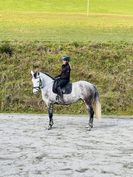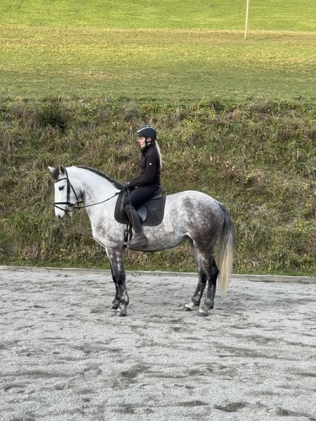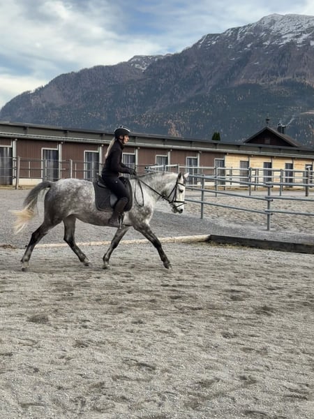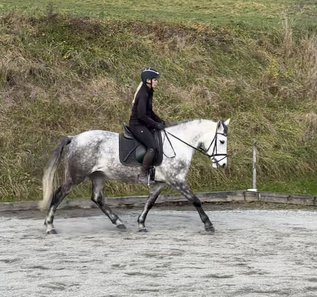 Wunderschöne Schimmelstute – Familienpferd mit bestem Charakter Rasse: – Geschlecht: Stute Farbe: Schimmel Stockmaß: ca. 155 cm Alter: 5 Jahre Diese junge Stute überzeugt mit ihrem ausgeglichenen Wesen und ihrer Vielseitigkeit. Sie wurde ein- und zweispännig gefahren, ist angeritten und kennt auch das Ausreiten. Trotz ihres jungen Alters zeigt sie sich dabei stets super brav, gelassen und zuverlässig. Charakter & Umgang • Sehr brav im Umgang • Unkompliziert und freundlich • Ideal als Familienpferd • „Ruhiger, cooler Charakter“ – auch in neuen Situationen gelassen • Sehr rittig und lernwillig Einsatzmöglichkeiten Ob Freizeit, Familienpferd oder Fahrsport – diese Stute ist vielseitig einsetzbar und bereit für weitere Förderung.