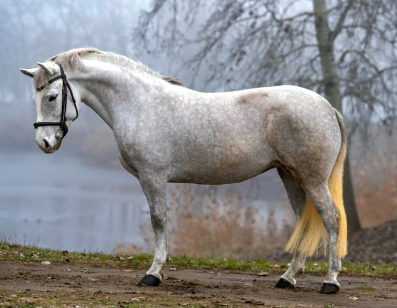 Kendy Mare 6 years old 146 cm Kendy is a 6-year-old mare with a height of 146 cm, a children's pony that has been fully ridden and moves smoothly and evenly in all three gaits (walk, trot, canter). Properties: • Calm, balanced temperament • Excellent choice for children and novice riders • Easy to handle, friendly • Regularly trained Health status: • In excellent health • Free from injuries and bad habits Kendy is an ideal family pony, perfect for leisure riding or sport. A reliable, lovable pony that will bring great joy to her new owner. 💛🐴 +49 176 4017 7894