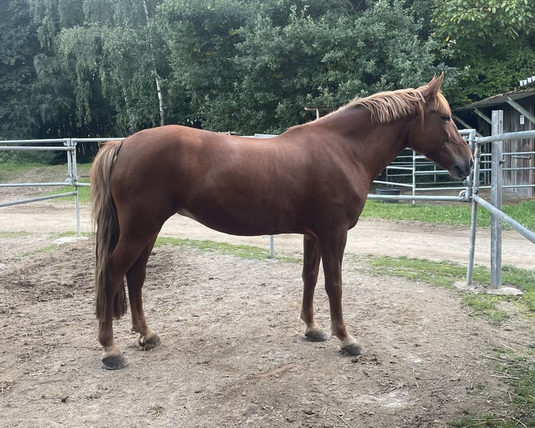 Hallo, Ich suche für meine Pony-Stute ein liebevolles neues Zuhause. Eckdaten: Alter: 9 Jahre Geschlecht: Stute Stockmaß: 1,48m Einsatz: Freizeit, leichte Arbeit, Ausritte Sie kommt aus Ungarn, ihre Abstammung ist unbekannt. Gesundheit: Penny hat Spat, ist aber tierärztlich abgeklärt und kann weiterhin problemlos als Freizeitpferd geritten werden, solange man ihrem Bewegungsapparat gerecht wird. Ein pferdegerechter Umgang ist mir wichtig, und ich wünsche mir jemanden, der mit dieser Information verantwortungsvoll umgeht. Charakter und Umgang: Im Umgang ist sie eine typische Ponystute, insgesamt aber sehr lieb und unkompliziert. Beim Reiten zeigt sie sich sehr motiviert und lernfreudig. Für wen geeignet? Nicht für komplette Anfänger geeignet, jedoch perfekt für Freizeitreiter*innen, die ein Pony suchen, das Spaß macht, jedoch keine hohen sportlichen Ambitionen haben. Perfekt für jemanden, der eine treue Gefährtin für viele schöne Stunden sucht. Platz vor Preis! Ein gutes Zuhause steht für mich an erster Stelle.