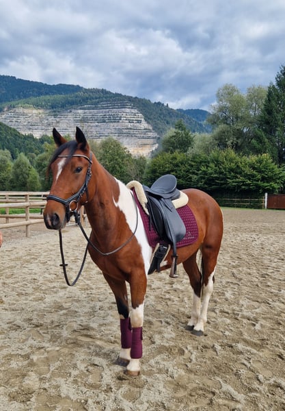 For sale is a beautiful 10-year-old Irish gelding with a height of 155 cm. This stylish pinto with an elegant look not only impresses visually but also with his sweet temperament and strong nerves. He is well-behaved when ridden out, going alone or in a group, and is familiar with beach rides and trail rides, remaining calm and reliable at all times. Fearless and attentive, he is always eager to please his rider – a true heart horse! 💖 He is also familiar with groundwork, although this is still new to him – he consistently shows a willingness to learn and is motivated. He is a 4-gaited horse and a pace horse, making him particularly comfortable to sit on. The canter is also responsive in the field. Healthy, without vices, barefoot, load-friendly, and accustomed to both pasture and box stall living. An all-around great leisure partner for anyone looking for a loyal, uncomplicated, and versatile horse. 💚 A viewing appointment can be arranged at any time upon request, and transport can be organized! His equipment can also be purchased for an additional fee if desired!
