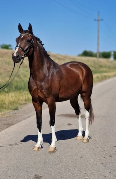 ✨🦇 Bakardi 🦇✨ 🦇 Age: 5 years 🦇 Gender: Gelding 🦇 Height: approximately 15.5 hh (155 cm) 🦇 Suitable for: Show jumping, leisure riding, beginners, children 🐴 Bakardi is an absolutely reliable partner who impresses both in daily handling and under saddle with his calm, balanced nature. He is consistently friendly, affectionate, and particularly good with children – making him ideal for young riders or beginners who need security and confidence. 💛 💨 When jumping, he is motivated, brave, and pleasant to ride. He does not hold mistakes against the rider and remains always controllable. Perfect for small competitions, riding schools, or as a safe leisure partner. ✨ His character is truly valuable: • Extremely well-behaved ✔️ • Well-mannered ✔️ • Easy to handle ✔️ • Nerve-proof ✔️ 🌿 Whether in the arena, on the trail, or in the paddock – Bakardi handles everything effortlessly and ensures a positive riding experience for young and old alike. 🔥 An ideal family and children’s gelding that is ready to go immediately. +49 176 4017 7894