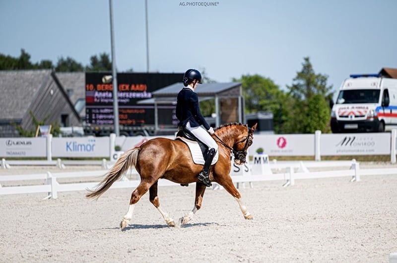 Erfahrener Pony für Kinder, mehrfacher Medaillengewinner bei nationalen Turnieren im Dressur, darunter polnischer Meisterschaften und Polpokal. Sehr brav und zuverlässig, ideal für den Einstieg in den Turniersport für einen Nachwuchsreiter oder Junioren. Mit Potenzial, bei großen nationalen und regionalen Wettbewerben Medaillen zu gewinnen. Zu den größten Erfolgen zählt der Titel Vizepolnischer Meister der Junioren auf Ponys im Jahr 2024 in den Dressurprogrammen der Klasse N sowie im Freestyle KUR, auf dem Niveau der Europameisterschaften. Multimedalist bei den polnischen Meisterschaften und Pokalturnieren in den Jahren 2021 bis 2025 in der Kategorie Junioren (Jung- und Junioren). Ununterbrochen bei acht aufeinanderfolgenden Polnischen Meisterschaften und Pokalturnieren stets auf Medaillenkurs: 2021 – 5. Platz bei den Polnischen Meisterschaften (OOM) 2022 – 3. Platz bei den Polnischen Meisterschaften (OOM) 2023 – 2. Platz bei den Polnischen Meisterschaften (OOM) 2024 – 2. Platz bei den Polnischen Juniorenmeisterschaften 2021 – 4. Platz beim Polnischen Pokal 2021 – 2. Platz beim Polnischen Pokal 2022 – 2. Platz beim Polnischen Pokal 2022 – 2. Platz beim Polnischen Pokal 2023 – 2. Platz beim Polnischen Pokal 2025 – 3. Platz beim Polnischen Pokal Bergs (ehemals AAD) ist ein erfahrener 14-jähriger Wallach, einer der erfolgreichsten Dressurponys in Polen. Meister im Vierkampf, mit großem Herz und vollem Vertrauen zum Reiter. Nur für Kinder geritten, nie von Trainern oder anderen Turnierteilnehmern „übernommen“, ausgebildet bis zur Klasse N. Hat nie eine Eliminierung oder Aufgabe im Turnier erlebt. Regelmäßig auf N- und P-Niveau am Start, mit sehr guten Bewertungen – über 75 % im Finale der OOM 2023 sowie knapp 70 % bei den N-7 KUR bei den polnischen Juniorenmeisterschaften 2024. Perfekt geeignet für Nachwuchsreiter oder Junioren für den Einstieg in nationale und regionale Turniere. Problemlos im Umgang, ruhig bei allen Behandlungen (Hufschmied, Impfung). Kein Problem beim Verladen. Gesund, ohne Hitzigkeit, regelmäßig geimpft und entwurmt. Verkauf wegen des Wachstums der Turnierreiterin, nur in verantwortungsvolle Hände, keine Pacht möglich. Weitere Erfolge umfassen unter anderem: 1. Platz bei den Meisterschaften der Wojewodschaft Kujawien-Pommern 2019 1. Platz bei den Meisterschaften der Wojewodschaft Kujawien-Pommern 2020 1. Platz bei den Meisterschaften der Wojewodschaft Kujawien-Pommern 2021 1. Platz bei den Meisterschaften der Wojewodschaft Kujawien-Pommern 2022 1. Platz bei den Nordpolnischen Meisterschaften 2020 1. Platz bei den Nordpolnischen Meisterschaften 2021 1. Platz bei den Nordpolnischen Meisterschaften 2022 1. Platz bei den Nordpolnischen Meisterschaften 2023 2. Platz – Vize-Makroregionenmeister 2020 1. Platz – Makroregionenmeister 2021 1. Platz – Makroregionenmeister 2022 Zudem zahlreiche Siege bei P- und N-Turnieren zwischen 2019 und 2025. SPORTLICHE ERGEBNISSE: https://livejumping.com/ap/search/all/Bergs%20(EX%20aad) Polnische Meisterschaften (OOM) Radzionków 2023: https://youtu.be/aMnyFIqT7tM Polnischer Pokal – Barłomino 2023: https://www.instagram.com/reel/CumCL9Yg2Yb/