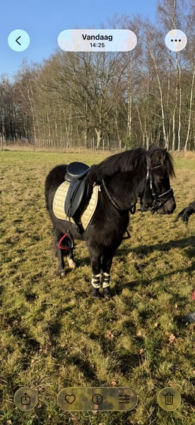 Flor zoekt een nieuw huisje 🐴 Flor is een lieve jonge pony die klaar is voor een nieuw thuis. Hij is zadelmak, heel werkwillig en pikt alles snel op. • Naam: Flor • Leeftijd: 3 jaar • Geslacht: ruin • Stokmaat: ± 1.20 m (groeit nog i.v.m. zijn leeftijd) • Kleur: zwart met een witte bles Flor beschikt over 3 mooie gangen en neemt ook graag een sprongetje. Verder is hij: • Braaf bij het poetsen, ook door kleine kinderen • Geeft alle 4 de voetjes heel gemakkelijk • Volledig verkeersmak • Braaf op wandeling en in het bos • Schrikt vrijwel nergens van Gezondheid & verzorging: • Steeds op tijd ontwormd • Vaccinaties in orde • Hoefsmid elke 3 maanden geweest Huisvesting: • Staat momenteel 24/7 op de weide met inloopstal • Kan ook zonder problemen binnen op stal staan Flor is een eerlijke, brave pony met een fijn karakter en veel potentieel voor de toekomst. 📩 Voor meer informatie, filmpjes of vragen mag u gerust een bericht sturen, ik reageer zo spoedig mogelijk.