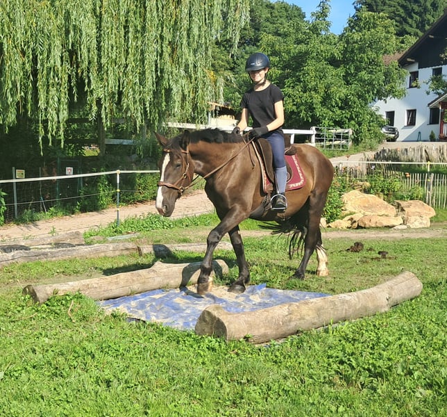 Donald ein Freund fürs Leben! Sein Herz absolut am rechten Fleck hat dieser tolle Wallach, bei uns geboren, sehr lieb und freundlich, Kuschelbär mit ruhigem Wesen, robust, gesund, top sozialisiert, leicht zu reiten, sehr sitzbequem, kennt nichts schlechtes, möchte immer gefallen, Anhänger fahren, Hufschmied, etc. alles top, bereit für neue Abenteuer und tolle Menschen, ekzemfrei, 148 cm, 3 1/2 Jahre. Für Wander-, Gelände-, Freizeit und Therapiereiten. Englisch und Western ist beides möglich. Offenstall und Herdenhaltung gewöhnt, Box ist auch kein Problem. Equidenpass vorhanden. Alle unsere Pferde kennen Bodenarbeit, unterschiedliches Gelände, Autos, landwirtschaftliche Maschinen, sowie Kühe, Esel, Schafe, Schweine, Hunde, Katzen und Hühner. Infos und Terminabsprache unter 08536-2890292 (AB vorhanden) oder 0157-78378455 (am Hof kein Mobilnetz). Bitte keine PN, Mail und WhatsApp Anfragen!! Sonntag Ruhetag. Zubehör und Transport günstig möglich. Jedem Kunden wird ein vertraglich festgesetztes Umtauschrecht von 6 Wochen eingeräumt. Preise sind Festpreise. Keine Anfragen auf Ratenzahlung erwünscht. Wer gleich mit Anhänger kommt und mitnimmt erhält 100€ Rabatt. Bei Kauf werden 1000€ in bar als Anzahlung fällig. Wer das Pferd gleich mitnehmen will, muss selbstverständlich komplett bezahlen. Wir absolvieren mit den Kunden einen Ausritt mit zwei Pferden Eurer Wahl, damit Ihr Euer Traumpferd kennenlernen und prüfen könnt ob es das richtige Pferd für Euch ist. Jeder Termin kostet 35€, egal ob reiten, vorreiten, bereitstellen, spazieren ... jeder weitere Reiter (Freundin, Freund, Schwester, Trainer...) bezahlt das selbe wenn er mitreitet, nur mal schauen kostet uns auch Zeit und somit 20€. Der Betrag wird beim Kauf eines Pferdes am selben Tag wieder erstattet. Aufgrund mehrfacher Vorkommnisse bitten wir darum wahrheitsgemäße Angaben über das Reitergewicht zu machen. Bei nicht wahrheitsgemäßen Angaben behalten wir uns vor, uns vor Ort gegen einen Proberitt zu entscheiden. Unseren Pferden zu Liebe möchten wir auch unseren gut gebauten Pferden nicht mehr als 120kg zumuten. Da es sich hierbei um ein lebendes Tier handelt, sind dies lediglich Eindrücke des Betreuers und keine zugesicherten Eigenschaften des Pferdes. Weitere Pferde/Ponys in meinen anderen Anzeigen oder auf Anfrage.