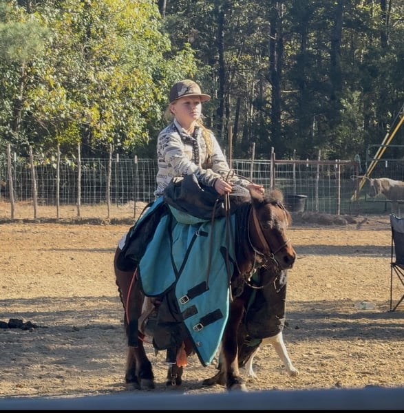 🎁 𝐈𝐍 𝐓𝐈𝐌𝐄 𝐅𝐎𝐑 𝑪𝒉𝒓𝒊𝒔𝒕𝒎𝒂𝒔 🎁 Happening now thru TUESDAY | DECEMBER 9th - Available EXCLUSIVELY on Ponybid's website! For more details and to register visit: www.Ponybid.com CONSIGNOR CONTACT: Lummus Performance Horses 903-824-2150 LOCATION: Bloomburg, Tx BREED: Miniature Pony REGISTERED: No COLOR: Bay HEIGHT: 38” AGE: 5 GENDER: Gelding “Ranchy” is a KID PONY DELUXE and he is ready just in time for CHRISTMAS!! He is a 5 yr old bay 38” tall gelding with ALL the looks and personality, look at all the mane and tail, he is the sweetest little guy in the barn! He loves the kids and loves to be groomed. Ranchy rides around good like a big horse, w/t/c and would be good for any rider. Ranchy has been a lot of miles and knows a hard days work. He is the perfect pony and goes wherever you point him. Ranchy has a REALLY good stop on him and will slide! He will also turn around correct! He has ZERO buck, bite or kick. Ranchy has drug logs, barrels, had kids/dogs running all around him, he will carry a tarp or walk over it. He’s been hauled to ropings, barrel races, jumping jumps, rodeos, working cows, dragging calves, hog hunting, swimming ponds, and been thru every aspect of the woods from thickets to boggy creeks, and trail riding down the roads. Trains honking and going by don’t bother him. He even rides ENGLISH! My kids love jumping him! We carry multiple buckets of feed strapped over his back to help carry to feed. The kids have been doctoring calves on him and he will hold a rope tight as well. They girls have been doing the barrels, poles, and roping the sled on him. Both of my girls 7 and 10 catch him by themselves, saddle, bridle, and ride him everywhere with ZERO help from an adult. He is the coolest little guy around and everywhere we go he gets ALL the attention with his cute personality and beautiful looks! He leads, loads, ties, bathes, and hauls good. Gets along with all the other big horses and minis. He’s an easy keeper. Ranchy has been my 7 yr olds personal pony for a while now. She is offering him to help teach another kiddo all the basics! ❤️