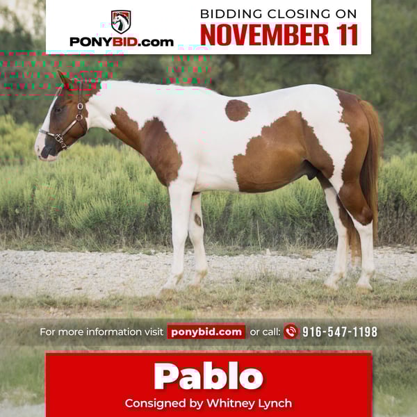 𝓽𝓱𝓮 𝐑𝐈𝐃𝐄𝐑'𝐒 𝓒𝓱𝓸𝓲𝓬𝓮 🐴 𝐏𝐎𝐍𝐘 𝐄𝐃𝐈𝐓𝐈𝐎𝐍 🐴 Happening now thru TUESDAY | NOVEMBER 11th - Available EXCLUSIVELY on Ponybid's website! For more details and to register visit: www.Ponybid.com CONSIGNOR CONTACT: Whitney Lynch 916-547-1198 LOCATION: Graham, TX BREED: Paint pony REGISTERED: No COLOR: Red & White HEIGHT: 13.2 AGE: 5 GENDER: Gelding Pablo is a 5 year old pony gelding that stands 13.2 hands tall and is built like a big horse. Pablo is very broke and can go all day long. He is good for beginners all the way up to someone who wants to be competitive in the Jr. high or even high school rodeos. Pablo has done lots of roping so far (heeling, breakaway, ranch rope, drug calves). We have taken him to a few playdays, used him to turn back, gather cattle, round up horses etc. He is lightly patterned on the barrels and poles. He will even watch a cow/flag! Rides outside/trail rides like a dream (crosses water, goes through the thick stuff, does not spook at wildlife, is surefooted). Not only is he talented at nearly everything he does, he stays BROKE! You can leave him off for a lengthy amount of time, and he will cinch up tight and ride off gentle EVERY single time. Pablo has the coolest look to him! He is colored up like the famous “Hidalgo” and is built correctly. So if your kids need their own little superstar of a pony, take a good, hard look at Pablo because he truly is ONE OF A KIND!! Call me at (916)547-1198 for more information or if you’d like to come try him.