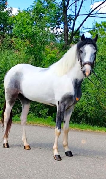 Te koop: een lieve ruin – ideaal pony voor de vrije tijd of, bij de juiste training, ook veilig voor de sport. Monty is Monty. Punt. Een heel bijzonder pony voor bijzondere mensen. Hij volgt zijn mensen als een hond, wil er altijd bij zijn en kleeft niet aan andere paarden. Deze charmante Porseleinschecke-ruin werd geboren in 2020 en overtuigt door zijn vriendelijke, zeer mensgerichte aard en zijn veelzijdige inzetmogelijkheden. Met een stokmaat van 142 cm is hij perfect voor kinderen en jongeren die hun eerste stappen in de paardensport willen zetten. De kleine vrijetijdspartner is gezond, betrouwbaar en toont zich altijd makkelijk in de omgang. Of het nu gaat om buitenritten, wandelingen of grondwerk – dit pony maakt overal een goede indruk en kijkt uit naar een nieuw gezin dat hem liefdevol begeleidt en uitdaagt. Monty is een kleine clown, geïnteresseerd in alles en iedereen, en verlangt naar aandacht en bezigheid. Omdat ik geen ruiter voor hem heb en zelf helaas te groot voor hem ben, zoek ik hem met pijn in het hart een nieuw thuis. Eigenlijk was hij bedoeld voor mijn kleindochters (2-4 jaar), maar daarvoor is hij iets te groot. Een kind of jongere tussen 6 en 16 jaar zou ideaal voor hem zijn. Daarom zou ik eventueel ook kunnen ruilen tegen een ponystute tot maximaal 135 cm. Bij interesse of voor meer informatie, neem gerust contact met mij op. Kom zelf kijken en laat je overtuigen door dit betoverende kleine paard!