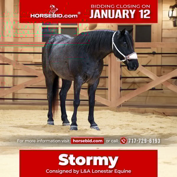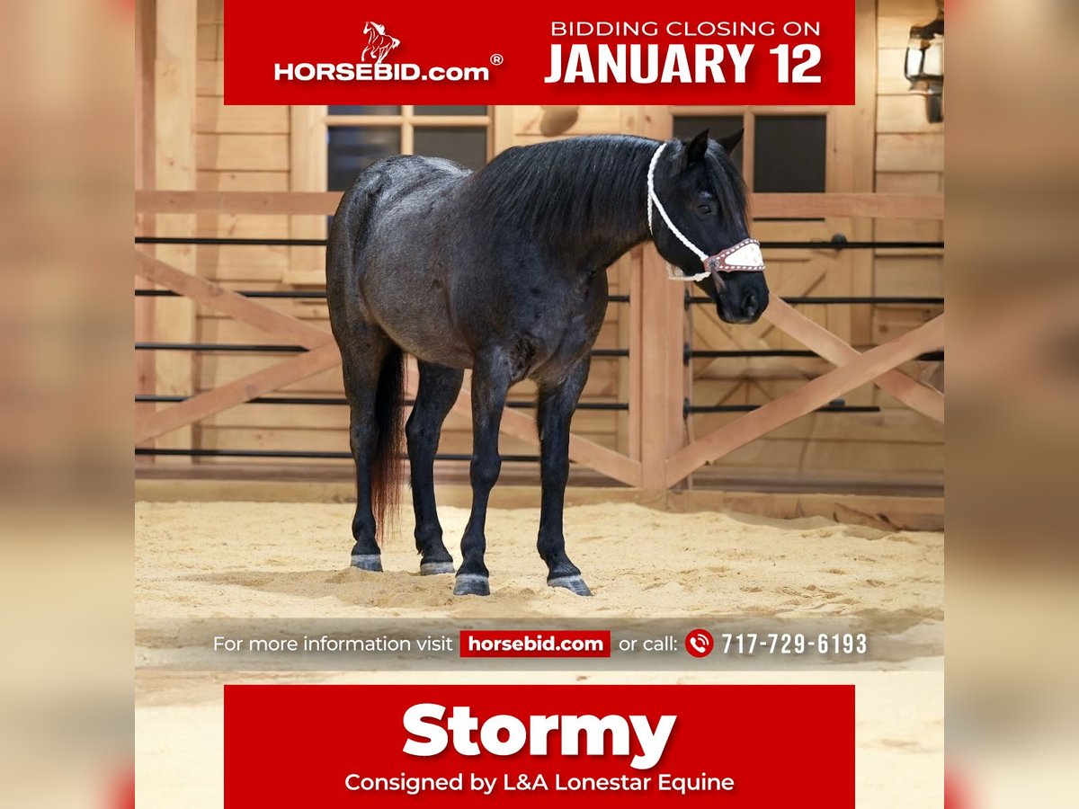 ♦️𝐍𝐄𝐖 𝐘𝐄𝐀𝐑'𝐒 𝑬𝒙𝒕𝒓𝒂𝒗𝒂𝒈𝒂𝒏𝒛𝒂♦️ Happening now thru MONDAY | JANUARY 12th - Available EXCLUSIVELY on HorseBid's website! For more details and to register visit: www.Horsebid.com CONSIGNOR CONTACT: L&A Lonestar Equine 717-729-6193 LOCATION: Needmore, PA BREED: Pony REGISTERED: No REGISTERED NAME: Stormy COLOR: Blue Roan HEIGHT: 13.1 AGE: 8 GENDER: Gelding If you’ve ever wanted a pony that does it all and steals your heart, here he is. This 8-year-old, 13.1 hh blue roan is truly one of a kind — versatile enough to ride both English and Western, calm enough to make every rider feel confident, and sweet enough to become instantly part of the family. He’s steady and smooth in the arena or on the trail, picks up both leads effortlessly, and has a kind, willing attitude that makes every ride a joy. Curious and adventurous, he loves new experiences and approaches everything with a confident, calm demeanor. On the ground, he’s just as special: easy to catch, stands quietly for the farrier, grooming, and tacking, and genuinely wants to be with his people. He’s the kind of pony that gives love as easily as he takes direction, making him a best friend, confidence builder, and family favorite all in one. Ponies like this don’t come around often — with his blue roan color, unbeatable temperament, and versatility, he’s truly one of a kind and ready to be someone’s forever pony.
