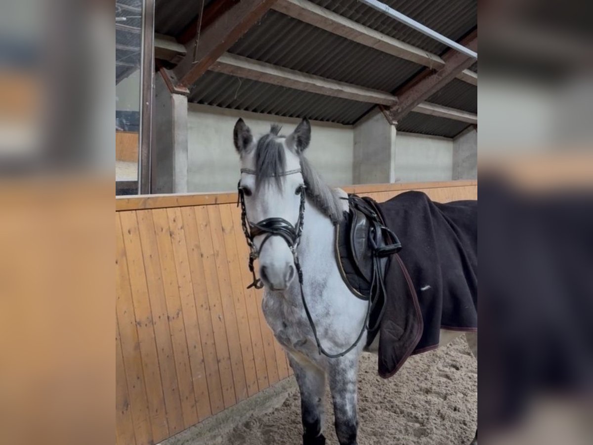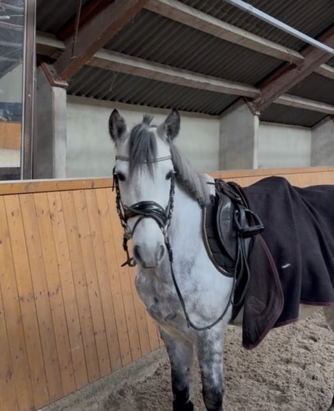 Oreo ist ein 8-jähriger Schimmelwallach mit einem Stockmaß von ca. 1,36 m. Mit seiner kompakten Statur deckt er auch größere Reiter gut ab. Er ist ein hübscher Freizeitpartner und besonders im Gelände motiviert. Ausritte meistert er sowohl alleine als auch in der Gruppe problemlos. Beim Reiten ist Oreo gut zu händeln und zeigt sich dabei aufmerksam und charakterstark. Er wünscht sich daher einen Reiter, der ihm eine klare und faire Führung gibt. Im Herdenverband ist er eher ranghoch und im Umgang kein typisches Schmusepony. Oreo ist verladefromm, regelmäßig beim Hufschmied und selbstverständlich geimpft. Auch die Zähne wurden kontrolliert und gemacht. Er wird nur in ein passendes und liebevolles Zuhause abgegeben. Bei Interesse melden Sie sich gern unter 01727310856.